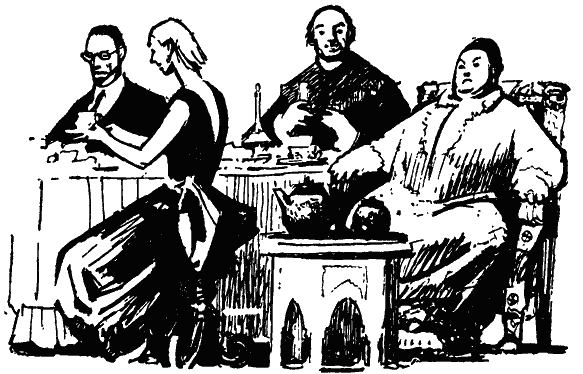 — О, как жарко! Хотя бы ветерок подул, — сказал, отдуваясь, дородный, краснощёкий пассажир лет пятидесяти. Он сидел в глубоком кресле и обмахивался белым шёлковым платком. Отлично сшитый белый костюм, массивный золотой перстень, золотая цепочка от часов на жилете и золотые очки придавали ему вид преуспевающего коммерсанта.