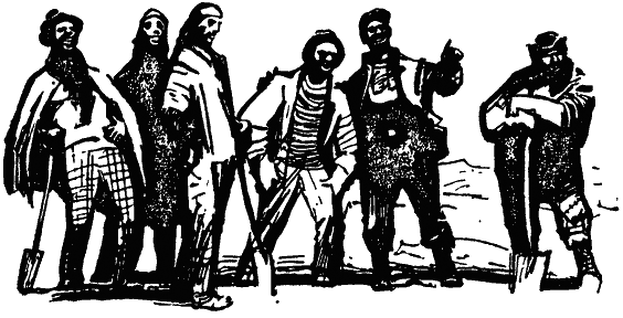 Музыкальный звук трубы не походил на резкое звучание пароходной сирены, а веселый возглас совсем не напоминал крика о помощи утопающего. Это было что-то новое, неизвестное. Бальтазар поднялся; ему казалось, будто сразу посвежело. Он подошел к борту и зорко оглядел гладь океана. Безлюдье. Тишина. Бальтазар толкнул ногой лежавшего на палубе индейца и, когда тот поднялся, тихо сказал: — Кричит. Это, наверно, он. — Я не слышу, — так же тихо ответил индеец-гурон, стоя на коленях и прислушиваясь. И вдруг тишину вновь нарушил звук трубы и крик: — А-а!.. Гурон, услышав этот звук, пригнулся, как под ударом бича. — Да, это, наверно, он, — сказал гурон, лязгая от страха зубами. Проснулись и другие ловцы. Они сползли к освещенному фонарем месту, как бы ища защиты от темноты в слабых лучах желтоватого света. Все сидели, прижавшись друг к другу, напряженно прислушиваясь. Звук трубы и голос послышались еще раз вдалеке, и потом все замолкло. — Это он… — Морской дьявол, — шептали рыбаки. — Мы не можем больше оставаться здесь! — Это страшнее акулы! — Позвать сюда хозяина!