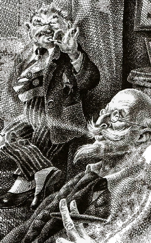 — Ни в каком случае, — тревожно свистнул по-суфлерски над ухом Маргариты Коровьев. — Ни в каком случае… — начала Маргарита. — Мессир… — дохнул Коровьев в ухо. — Ни в каком случае, мессир, — справившись с собой, тихо, но ясно ответила Маргарита и, улыбнувшись, добавила: — Я умоляю вас не прерывать партии. Я полагаю, что шахматные журналы заплатили бы недурные деньги, если б имели возможность ее напечатать. Азазелло тихо и одобрительно крякнул, а Воланд, внимательно поглядев на Маргариту, заметил как бы про себя: — Да, прав Коровьев! Как причудливо тасуется колода! Кровь! Он протянул руку и поманил к себе Маргариту. Та подошла, не чувствуя пола под босыми ногами. Воланд положил свою тяжелую, как будто каменную, и в то же время горячую, как кровь, руку на плечо Маргариты, дернул ее к себе и посадил на кровать рядом с собою. — Ну, уж если вы так очаровательно любезны, — проговорил он, — а я другого ничего и не ожидал, так будем без церемоний. — Он опять наклонился к краю кровати и крикнул: — Долго будет продолжаться этот балаган под кроватью? Вылезай, окаянный ганс! — Коня не могу найти, — задушенным и фальшивым голосом отозвался из-под кровати кот, — ускакал куда-то, а вместо него какая-то лягушка попадается. — Не воображаешь ли ты, что находишься на ярмарочной площади? — притворяясь рассерженным, спрашивал Воланд. — Никакой лягушки не было под кроватью! Оставь эти дешевые фокусы для Варьете. Если ты сейчас же не появишься, мы будем считать, что ты сдался, проклятый дезертир. — Ни за что, мессир! — заорал кот и в ту же секунду вылез из-под кровати, держа в лапе коня. — Рекомендую вам… — начал было Воланд и сам себя перебил: — Нет, я видеть не могу этого шута горохового. Посмотрите, во что он себя превратил под кроватью. Стоящий на задних лапах и выпачканный пылью кот тем временем раскланивался перед Маргаритой. Теперь на шее у кота оказался белый фрачный галстук бантиком, а на груди перламутровый дамский бинокль на ремешке. Кроме того, усы кота были вызолочены. — Ну что же это такое! — воскликнул Воланд. — Зачем ты позолотил усы? И на какой черт тебе нужен галстук, если на тебе нет штанов? — Штаны коту не полагаются, мессир, — с большим достоинством отвечал кот, — уж не прикажете ли вы мне надеть и сапоги? Кот в сапогах бывает только в сказках, мессир. Но видели ли вы когда-либо кого-нибудь на балу без галстука? Я не намерен оказаться в комическом положении и рисковать тем, что меня вытолкают в шею! Каждый украшает себя, чем может. Считайте, что сказанное относится и к биноклю, мессир! — Но усы?.. — Не понимаю, — сухо возражал кот, — почему, бреясь сегодня, Азазелло и Коровьев могли посыпать себя белой пудрой, и чем она лучше золотой? Я напудрил усы, вот и все! Другой разговор был бы, если б я побрился! Бритый кот — это действительно уже безобразие, тысячу раз согласен признать это. Но вообще, — тут голос кота обидчиво дрогнул, — я вижу, что ко мне применяют кое-какие придирки, и вижу, что передо мною стоит серьезная проблема — быть ли мне вообще на балу? Что скажете вы мне на это, мессир? И кот от обиды так раздулся, что казалось, еще секунда, и он лопнет. — Ах, мошенник, мошенник, — качая головой, говорил Воланд, — каждый раз, как партия его в безнадежном положении, он начинает заговаривать зубы, подобно самому последнему шарлатану на мосту. Садись немедленно и пре