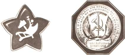 Один из первых красочных рисунков Государственного герба РСФСР выполнил главный медальер Петроградского монетного двора академик Антон Фёдорович Васютинский. Академик А. Ф. Васютинский был автором и того образца государственной печати с гербом, оттиск которой появился на листке письма Владимира Ильича Ленина немецкой коммунистке Кларе Цеткин. В. И. Ленин писал 26 июля 1918 года: «Мне только что принесли новую государственную печать. Вот отпечаток. Надпись гласит: Российская Социалистическая Федеративная Советская Республика. Пролетарии всех стран, соединяйтесь!» Вскоре герб Советского государства стал известен и за рубежом. Вот как это произошло. 30 сентября 1918 года в Москву из Швеции пришло письмо в Народный комиссариат по иностранным делам. Первый посол Страны Советов в Скандинавских странах В. В. Воровский просил доставить ему новый советский герб: «...будьте добры прислать мне изображение его в сравнительно крупном масштабе, вершка четыре в диаметре, и по возможности в красках. Закажите нарисовать какому-нибудь молодому художнику. Мне он нужен для щита на здании посольства, а потому важно иметь в красках». Первый советский герб оставался Государственным гербом всей страны до 1923 года. 30 декабря 1922 года I съезд Советов СССР принял Договор об образовании Союза Советских Социалистических Республик.