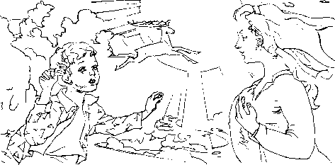 Они очутились в необыкновенном саду; занесённый снегом сад цвёл, на яблоневых ветвях, покрытых лёгкими цветами пушистого инея, прыгали малиновые снегири, а у корней приземистых деревьев кувыркались в сугробах солнечные зайцы. В глубине сказочного сада стоял голубой дом с радужными окнами; над его крышей, на высоком шпиле, сидела неведомая птица. Она приоткрыла глаз, наклонила голову, но не слетела вниз, не постучала в окно дома, не известила его хозяина о том, что в его сад пожаловали гости. Рогов никогда не видел такого сада, такого дома и такой диковинной птицы. — Зачем мы сюда пришли? — Ты помнишь, что тебе сказал Василий Петрович? — повторила Чижикова, и Рогов её не узнал. Конечно, это была Чижикова в своей меховой шубке, в шапке с помпоном, из-под шапки торчат две косички с коричневыми бантиками, но это и не она. У Чижиковой никогда не было такого голоса, которого нельзя не послушаться. — Мы не должны терять ни одной минуты, — говорит Чижикова, и Рогов идёт за ней прямо к собачьей будке; собака на привязи, но всё-таки это чужая собака. Рогов даже зажмурился. Но ничего страшного не произошло. Чужая лохматая собака легла у ног Чижиковой и завиляла хвостом. — Садись здесь, — сказала Чижикова, указывая Рогову на скамейку. — Этому мальчику нужно выучить урок,— объяснила она лохматой собаке. — Пожалуйста, — ответила собака, — я ему не помешаю. И Рогов послушно уселся на скамейку. Мало этого, он достал из портфеля учебник, быстро перелистал страницы, нашёл нужный параграф. Он себя просто не узнавал. Происходило настоящее волшебство, Чижикова буквально не давала ему опомниться. — Я буду ходить и считать до двух тысяч,— сказала она.— Это вполне достаточно, чтобы понять, что нам было задано. Учи, учи.— И Чижикова стала ходить по тропке в незнакомом саду — взад и вперёд. И вдруг на секунду Чижикова стала почти прежней Чижиковой. Этой секунды было бы вполне достаточно, чтобы Рогов успел стряхнуть с себя её чародейство, добежать до забора, пролезть в щель, и пусть бы Чижикова считала хоть до пяти тысяч! — Куда? — спросила Чижикова строго. И Рогов снова уткнулся в учебник. — Выучил? спросила Чижикова. Рогов кивнул головой. — Теперь ты подойдёшь к двери,— Чижикова показала на голубой дом, — подойдёшь к двери и постучишь. — Я лучше пойду к себе домой, — сказал Рогов. Но Чижикова его не слушала. — Постучишь, — повторила она, — и скажешь только три слова: «Я выучил урок».— И, произнеся эти три слова, Чижикова исчезла. Рогов обомлел. Он бросился к забору, Чижиковой у забора не было, не было и щели, через которую они проникли в чудесный сад. Рогов бросился к калитке — дверь в голубом доме распахнулась. Появился Василий Петрович. Волшебство продолжалось. — Я выучил урок! — выпалил Рогов. — Прекрасно! — Василий Петрович нагнулся, поднял на снежной тропинке коричневый бантик и сказал: — Оказывается, у тебя настоящий характер! Василий Петрович с Роговым вошли в голубой дом. И, выслушав Рогова, Василий Петрович зачеркнул двойку и написал красным карандашом пятёрку. Рогов бежал домой вприпрыжку его ждали. Он получил подарки и билет на хоккей «наши со шведами». А на другой день наступил Новый год. Первый день Нового года был метельный, и снег занёс вчерашние следы на дорогах и в чудесном саду, в котором были Рогов и Чижикова. Г. Карпенко
