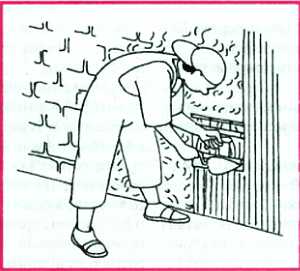 Цикли представляют собой стальные пластинки длиной 200–300 мм и шириной до 100 мм, на которые нанесены различные зубья, зубчики, выступы и выемки. Самой циклей работать трудно, поэтому для удобства используют деревянную или пластмассовую ручку (обойму), куда закрепляют нужную циклю. Гвоздевая щетка — инструмент, соорудить который проще пареной репы: в деревянный брусок размером 150х150 мм набьем гвоздей на расстоянии 15 мм друг от друга и высотой выступа 10–15 мм. И все. Гребенка — это разновидность щетки, где «щетина» (гвозди) расположена в один ряд. Штамп — он и есть штамп, смотрите на рисунке. Валики (рис. 23) — обычный и валик-шовник — предназначены для накатывания рисунков, различных фактур и швов по пластичному раствору. Валики обычно имеют несколько съемных насадок на вал, отличающихся друг от друга рисунками и фактурами. Пила (рис. 24) — пилой очень удобно производить рустовку (разбивку мод кирпичную или каменную кладку) затвердевшей штукатурки. Полотно пилы не должно быть слишком длинным — достаточно 50-100 мм, иначе будет невозможно использовать пилу для рустовки под кирпичную кладку. Предметы, объединенные в следующей группе, и инструментами не назовешь, и к разряду материалов отнести крайне трудно, а потому будет у них звание «вспомогательный инвентарь»: рогожа и мешковина для завешивания свеженанесенной штукатурки для предохранения от быстрого и чрезмерного высыхания; картон толщиной 1–3 мм для изготовления шаблонов, для выполнения декоративной штукатурки сграффито; губки для нанесения фактуры «под губку»; сетка с ячейками от 2,5 до 10 мм и размером 1х1 м или 1х1,5 м; веник из березовых прутьев и щетинная щетка для нанесения фактуры набрызга; деревянный тес и кровельная сталь для изготовления шаблонов для вытягивания тяг. Пожалуй, здесь перечислен минимум необходимых инструментов и инвентаря для производства штукатурных работ.