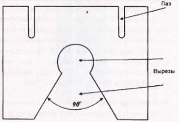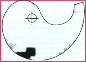 Для этого подбирают два круглых стержня из твердой древесины: один — диаметром 12 мм, второй — диаметром 40 мм. Стержни распиливают на кусочки необходимого размера. Затем в кусках диаметром 40 мм сверлят центральные отверстия 12 мм и вклеивают в них кусочки первого стержня. Кулачок изготавливают из древесины твердых пород (дуб, бук, береза и т. д.). Для этого сначала переводят рисунок (рис. 5) на картон и вырезают из него шаблон. По шаблону различают внешний контур кулачка на заготовке и расположение отверстия. Далее выпиливают кулачок и сверлят в нем отверстие 12 мм. В это отверстие вклеивают отрезок 12-миллиметрового стержня. Отрезок должен быть такой длины, чтобы он выступал с каждой стороны кулачка (внизу до 20 мм, вверху — на 5-10 мм).