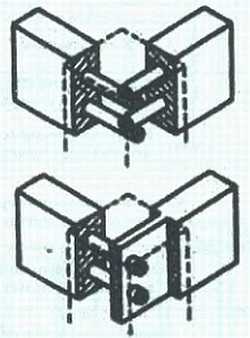 Рис. 4. Примеры соединения царг и ножек с помощью шкантов