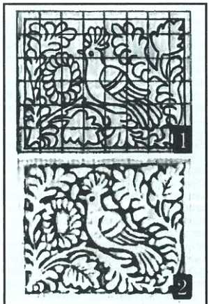 Работа над резьбой начинается с эскиза, который разрабатывается с учетом формы, размеров и назначения украшаемого деревянного изделия. Эскиз выполняют на листе бумаги в натуральную величину. Композиция составляется из элементов, характерных для данного вида резьбы, тщательно отрабатываются все ее детали. Рисунок с эскиза переводится на кальку, а затем с помощью копировальной бумаги на древесину. Рисунок можно перевести остро отточенным карандашом. Но при многократной обводке контуры рисунка забиваются и теряют четкость. Поэтому вместо карандаша резчики часто применяют костяную палочку с тонким отполированным концом. Можно также использовать шило, конец которого притупляют и тщательно полируют для того, чтобы он свободно скользил по бумаге, не царапая ее.