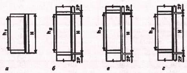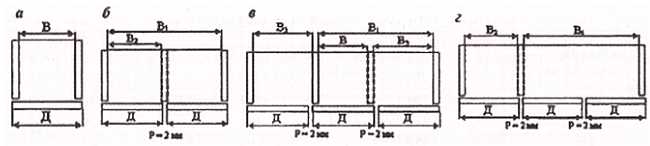 Рис. 5. Формирование проемов корпусов по ширине: а — однодверный корпус; б — двухдверный корпус; в — трехдверный корпус (исп. Г); г — трехдверный корпус (исп. II)