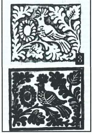 Первый этап резьбы состоит из двух основных приемов: надрезки и подрезки. Выполняется надрезка в основном резаком, но в некоторых участках контура могут применяться полукруглые стамески с крутизной, соответствующей линиям рисунка. Лезвие стамески или носок резака углубляется в древесину примерно на 1,5–2 мм. Резак передвигают на себя, слегка наклонив его полотно к поверхности обрабатываемого изделия. При этом следят за тем, чтобы глубина надрезки оставалась постоянной. Нельзя выполнить чисто и аккуратно любой срез на древесине, если не принимать во внимание ее строение. Там, где резак будет пересекать волокна древесины почти под прямым углом, чаще всего возникают сколы. При выполнении резьбы изделие необходимо постоянно поворачивать, выбирая для каждого участка контура такое направление движения резца, при котором волокна древесины перерезались бы им под небольшим углом. Там, где избежать поперечного пересечения волокон невозможно, подрезку выполняют за два-три прохода резца. В тех участках рисунка, где его контуры совпадают с кривизной имеющихся полукруглых стамесок, надрезку выполняют стамесками. Применение полукруглых стамесок намного убыстряет работу, но увлекаться ими не следует, так как резьба, выполненная подобным образом, выглядит более сухо, чем выполненная резцом. Вслед за надрезкой контура следует подрезка. При подрезке резак ведут в том же направлении, что и при надрезке, только с наклоном полотна в другую сторону (в сторону фона), соблюдая те же правила резки древесины. После выполнения очередной подрезки от деревянной доски отделяются стружки в виде трехгранных призмочек. На следующем этапе приступают к так называемому заоваливанию, то есть скруглению выступающих по контуру ребер со стороны орнамента и со стороны фона. Детали орнамента заоваливаются более круто, при этом на ребре снимается очень узкая фаска. К фону же контур заоваливается отлого и снимается широкая фаска. Заоваливание выполняется резаком и плоской стамеской. Завершают резьбу нанесением на определенные участки узора небольших порезок, контурных или ногтевидных, в условной манере передающих прожилки на листьях, оперение птиц и т. п. Если выполняется резьба с подборным фоном, вначале фон выбирают полукруглыми стамесками, а затем выравнивают плоскими. Но наиболее удобны для этих целей клюкарзы с полукруглой и плоской рабочими частями.