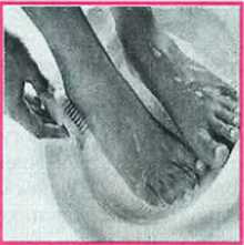 Проблема не из приятных, особенно, если она преследует вас годами, и вы никак не можете найти решения. У некоторых людей потливость ног является врожденным качеством, то есть у людей быстрый обмен веществ, который в совокупности с жарой образует потливость ног. В таком случае следует искать проблему в рационе питания. Для тех, у кого потливость ног и неприятный запах является приобретенным качеством, советуем поступать следующим образом. 1. Итак, на помощь к нам придет антиперспирант, которым мы обрабатываем подмышки. Нужно намазать или опрыскать ноги, подождать пока высохнут, и надеть новые чистые носки. 2. Еще одним способом является, ежедневное мытье ног в теплой воде с бактерицидным или дезодорирующем мылом. 3. Чайная ножная ванна. Берете два чайных пакетика и в течение пятнадцати минут кипятите их в литре воды. После кипячения пакетики нужно выбросить, а получившийся отвар разбавить двумя литрами воды. Когда чай остынет до подходящей температуры (каждый выбирает под себя) опустите в него ноги, и держите в течение получаса. Столь несложную процедуру следует повторять ежедневно. В крепком чае содержится дубильная кислота, которая обладает сильными вяжущими свойствами. Дубильная кислота стягивает поры и убивает микробы, тем самым, уменьшает потоотделение. 4. Дезодорирующая ванна с уксусом. В тазу с теплой водой следует развести стакан уксуса. Для достижения максимального эффекта можно добавить в раствор несколько капель тимьянового масла. Данное масло содержит сильный антисептик, который борется с бактериями. Принимать дезодорирующую ванну с уксусом следует ежедневно в течение недели по 15–20 минут.