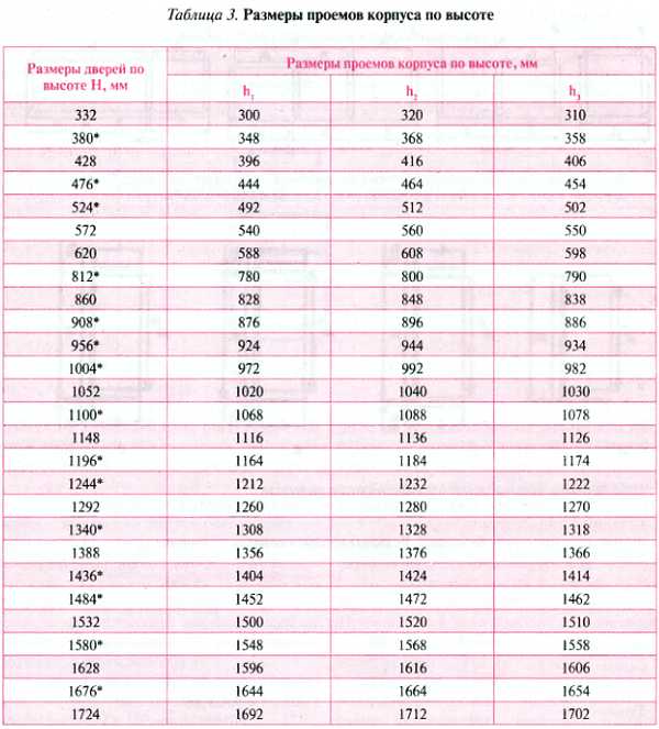 Размеры горизонтальных и вертикальных перегородок определены в соответствии с установленными ОСУ размерами проемов корпусов, представленных на рис. 5 и рис. 6, табл. 2 и 3. При изменении толщин горизонтальных перегородок должны корректироваться размеры вертикальных перегородок.