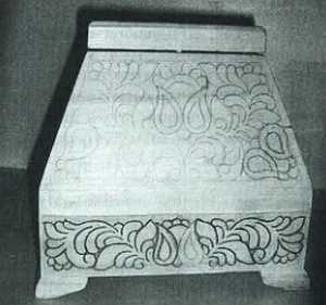 Изделия, в которых в качестве декора предполагается использовать плоскорельефную резьбу, изготовляют из лиственной древесины в столярной мастерской по заранее разработанному эскизу. На первых порах можно использовать покупные деревянные изделия, например, разделочную доску, полочку, пенал и т. п. Они обычно изготавливаются из липы, осины или березы. Хороший материал для резных работ — выдержанная липовая древесина пришедших в негодность старых чертежных досок. Плоскорельефная резьба выполняется резаком, плоскими и полукруглыми стамесками, которые заказывают или изготовляют сами из инструментальной стали. Хорошие инструменты можно изготовить из имеющихся в продаже стандартных стамесок. Промышленностью выпускаются плоские и полукруглые стамески с шириной полотен от 4 до 50 мм. Стандартом установлены следующие номера стамесок, которые соответствуют ширине полотна: 4, 6, 8, 10, 12, 16, 20, 25, 32, 40 и 50. Обычно стамески насажены на деревянные или пластмассовые рукоятки. Плоские стамески достаточно заточить, и они готовы к применению. Из плоских стамесок с шириной полотен 8 и 20 мм изготовьте два резака (ножа-косяка). Угол между косым срезом и продольной осью резака должен составлять 45–60°. Из стамесок, имеющих ширину полотна 4, 6, 8, 10, 12 и 16 мм, нужно изготовить полукруглые стамески. Конец полотна стамески отожгите на газовой горелке или паяльной лампе и медленно охладите. Затем зажмите полотно стамески в тисках и отпилите ножовкой клиновидную режущую часть. Подходящим по размерам круглым напильником проточите вдоль полотна желоб и опилите полотно с обратной стороны плоским напильником, придав ему цилиндрическую форму. Таким же образом опиливают стамеску-уголок, только желоб вытачивают трехгранным напильником. При выборке глубокого фона вместо полукруглых стамесок удобнее применять клюкарзы. Клюкарзы — это те же плоские и полукруглые стамески, но с коленообразным изгибом. Их изготавливают, из стамесок с деревянными рукоятками. Полотна стамесок сбивают с рукояток, раскаляют докрасна в муфельной печи и придают на наковальне нужный изгиб, закаляют и после остывания насаживают на рукоятки. Все режущие инструменты вначале затачиваются на электронаждаке, а затем на мелкозернистом точильном камне и оселке. Окончательную доводку выполняют на войлочном круге или вручную на кожаном ремне с пастой ГОИ. В процессе резьбы инструменты постоянно подтачивают на оселке и правят с пастой ГОИ.