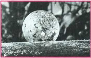 Потребуются: • мыльные пузыри • морозная погода Опыт: Выносим баночку с мыльным раствором на сильный мороз и выдуваем пузыри. Сразу же в разных точках поверхности возникают мелкие кристаллики, которые быстро разрастаются и наконец сливаются. Если погода не очень морозная и пузыри не замерзают, понадобится снежинка: как только вы выдули мыльный пузырь, сбросьте на него снежинку, и вы увидите, как она тут же соскользнет вниз и пузырь замерзнет. Разоблачение: При морозе и соприкосновении со снежинкой моментально начинается процесс кристаллизации, поэтому мыльный пузырь замерзает.