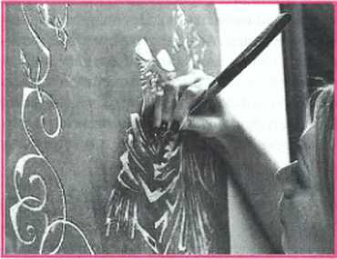 Внимание: при работе над созданием орнамента приемом выцарапывания рука должна быть «твердой». Вообразите себя хирургом — и у вас все получится.