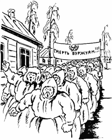 Вышеупомянутый последний буржуй, будучи приведен в Ц.И.К. и поставлен перед глазами товарища Матвея Кислого (мир урне с его прахом), уже трепетал за свою неизбежную участь по всей строгости высшей меры наказания. Но товарищ Кислый замедлил с решением, и все вокруг него безмолвствовали. После некоторого молчания, Матвей возвысил голос и сказал: