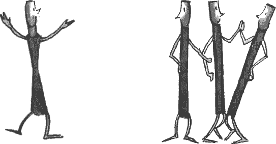 — Но что же это всё-таки за корни? — Позвольте мне на ваш вопрос ответить вопросом: сколько будет трижды три? — Разумеется, девять! — Великолепно! Сами того не замечая, вы произвели важное и прекрасное действие: возвели тройку в степень! — Нет, — возразил Сева, — я просто умножил тройку саму на себя. — Вот именно. Но это же и есть возведение в степень. И притом — во вторую степень. — А разве можно ещё и в третью? — спросила Таня. — Конечно. Для этого надо девять ещё раз умножить на три. — Значит, три, помноженное на три и ещё раз на три, — это и есть третья степень трёх? — сказала Таня. — Совершенно верно. Поэтому третья степень трёх равна… — …двадцати семи, — закончила Таня. — Но ведь так можно поступать без конца! — сказал Сева. — Как вы это правильно заметили! — восхитилась Тройка. — Именно, без конца! И тогда будут получаться четвёртая, пятая, шестая степени… — Любопытно. — Но вернёмся к началу нашего вопроса, — продолжала Тройка. — Вы спросили, что такое радикал? Начнём от печки. Трижды три — девять. А теперь я задам вам тот же вопрос с конца: какое число нужно возвести во вторую степень, чтобы получить девять? — Три, — сразу ответил Сева. — Видите, по девятке мы узнали, какое число было возведено во вторую степень. И число это оказалось тройкой. — Вот это действие и называется извлечением корня? — спросила Таня. — Ну да! — обрадовалась Тройка. — И обозначается оно радикалом. — А ты думал, им ловят бабочек, — съехидничала Таня. Сева торжественно поднял руку: — Клянусь, теперь я всегда буду помнить, чему равен корень из девяти. — И всё-таки, — продолжала Тройка, — не следует думать, что корень из девяти всегда равен трём! Всё зависит от того, какой корень вы извлекаете. — Как, — опешил Сева, — разве корни бывают разные? — Совершенно разные! Есть корни и третьей и четвёртой степени. Об этом вы узнаете в своё время. А теперь простите меня. Я боюсь опоздать на площадь Добрых Напутствий. Тройка схватила чемоданчик и убежала. И тут только мы заметили, что Четвёрка с бантиком куда-то исчезла. Посовещавшись, мы решили продолжать путь одни. Это было нетрудно: все жители города двигались сейчас в одном направлении.
