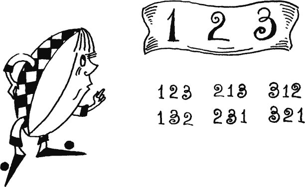 ПЕЩЕРА ОСВЕЩАЕТСЯ ЭЛЕКТРИЧЕСТВОМ АВТОМАТИЧЕСКИ, если вы правильно ответите на следующий вопрос. Напишите два десятизначных числа, из которых каждое содержит все десять цифр. Одно из них должно быть наибольшим из возможных, а второе — наименьшим.Сущие пустяки! Я тут же написал наибольшее десятизначное число, состоящее из всех десяти цифр, — сперва цифру 9, а за ней все подряд в обратном порядке: 8, 7, 6, 5, 4, 3, 2, 1 и 0. Так я получил наибольшее число: девять миллиардов восемьсот семьдесят шесть миллионов пятьсот сорок три тысячи двести десять. Большего числа из десяти цифр не составить. Ну, а с наименьшим дело обстояло ещё проще. Надо было только написать те же цифры в обратном порядке: 0, 1, 2, 3, 4, 5, 6, 7, 8 и 9. Я так и поступил, но… лампочка в пещере почему-то не зажглась. — А это потому, — вмешалась неугомонная Единичка, — что у вас получилось не десяти-, а девятизначное число. Ведь цифра нуль перед числом ровно ничего не значит! Что ж, на этот раз она оказалась права. Я немедленно переставил нуль на конец числа: 1 234 567 890. Да будет свет! Но света не было. Очевидно, авария на электростанции. Так мы в пещеру и не попали. Я расстроился, а тут ещё Единичка (хорош Пятница!) стала приставать со своими вопросами. Ей, видите ли, понадобилось узнать, сколько вообще можно написать десятизначных чисел из всех десяти цифр! Этот вопрос требует длительного вычисления. Думаю, что на него может ответить только быстродействующая вычислительная машина. А так как я забыл её захватить, придётся Единичке подождать, пока я вычислю сам.