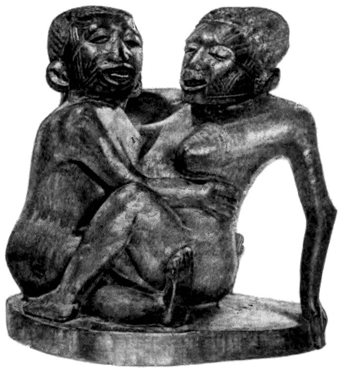⠀⠀ ⠀⠀ ⠀⠀ ⠀⠀«Варились в одном котле мстительность и камень. Камень разварился. Мстительность осталась твердой» (пенде. Заир)Возможно, у читателя данного повествования возникнут два заблуждения. Первое — что история и культура африканских народов, живших южнее Сахары и якобы издавна находившихся в состоянии безмятежности и покоя, формировались исключительно под влиянием внешних воздействий. Действительно, хвастливые сообщения древних хронистов, в которых сведения по этнографии более чем скудны, способны произвести такое впечатление. Когда корабли царицы Хатшепсут пересекли океан, население Западной, Центральной, Восточной и Южной Африки переживало стадию неолита19. ⠀⠀ ⠀⠀ ⠀⠀ ⠀⠀ Ложечка для мази в виде плывущей женщины. XVIII династия (XIV в. до н. э.)