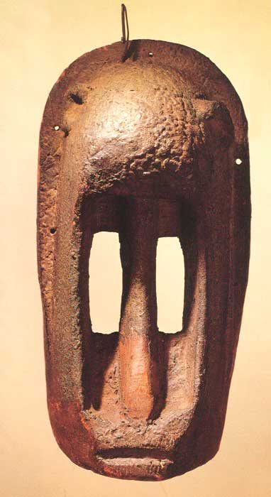 ⠀⠀ ⠀⠀ ⠀⠀ ⠀⠀ Как раз в нижнем течении, в области, наиболее благоприятной для развития сельского хозяйства, реку преграждает цепь из тридцати двух порогов и водопадов, создающих непреодолимый барьер для судоходства. Это не значит, однако, что другие отрезки реки не использовались для налаживания столь необходимых связей. Использовались, и довольно основательно: уже первые португальские мореплаватели видели на Конго суда, в которых могло разместиться до двухсот человек. Тем не менее вода и лес преграждали доступ в глубь страны до тех пор, пока нескончаемые потоки людей, нагруженных разобранными деталями судов, не проникли вверх по реке выше естественных преград, а деревья-гиганты из дремучего леса не были распилены на железнодорожные шпалы. Для прибрежных районов бассейна Конго в общих чертах характерно все то, что уже перечислялось нами относительно побережья Западного Судана, — сплошной песчаный пляж с песчаными мелями перед ним и необузданным атлантическим прибоем. В бассейне Конго живут представители многих народов, в том числе уже упоминавшиеся азанде, которые совместно с мору-монгбету расселились на северо-востоке Заира. К многочисленным этническим группам северной части этого района относятся также фанг, живущие в южном Камеруне и Габоне. Они говорят на одном из языков банту и занимаются лесным земледелием, как и родственные им во многих отношениях монго, банги и нгала, заселившие центральные части бассейна Конго. По реке Итури в северо-восточном Заире в тропических лесах разбросаны многочисленные группы пигмеев, объединенных общим названием мбути. Другая область их расселения охватывает южный Камерун и центральные районы влажных лесов Заира. По его южным границам живут конго, мбунда и лунда, занимающиеся земледелием в саваннах и лесах. Перечисленные народы бассейна Конго промышляют также охотой и нередко рыбной ловлей. ⠀⠀ ⠀⠀ ⠀⠀ ⠀⠀ Маска кивойо. Крашеное дерево и волокно рафии. Пенде (Заир).