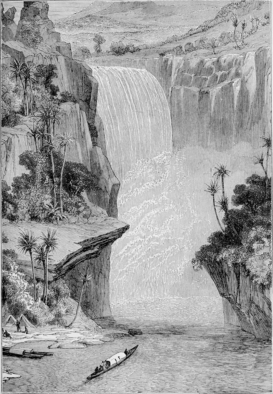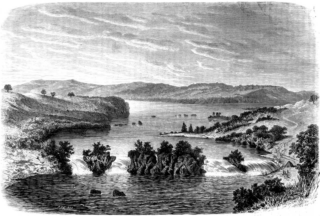⠀⠀ ⠀⠀ ⠀⠀ ⠀⠀ И тем не менее этот вид надолго приковывает к себе внимание зрителя. Рокот бушующей воды, тысячи рыб, изо всех сил прыгающих вверх навстречу потоку, рыбаки… вышедшие из лодок и расположившиеся со своими рыболовными снастями и крючьями на каждом камне, крокодилы и бегемоты, сонно лежащие в воде, переправа, тянущаяся через реку выше водопада, стадо, пригнанное к краю озера на водопой. Все это, вместе с привлекательнейшими окрестностями — невысокими горами, на вершинах поросшими травой, а на склонах и у подножия деревьями, — создает такую гармоничную картину, что лучше вряд ли можно себе вообразить» 214. ⠀⠀ ⠀⠀ ⠀⠀ ⠀⠀ Центральноафриканские озёра и истоки Нила