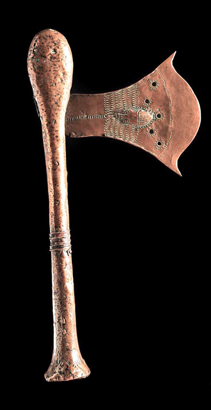 ⠀⠀ ⠀⠀ ⠀⠀ ⠀⠀ новой кости в этом районе. «Наконец Типпо-Тип согласился и подписал контракт, и я выдал ему чек на 1000 фунтов. 5 ноября 1876 года наше воинство, насчитывавшее 700 человек (рабы Типпо-Типа и моя экспедиция), покинуло Ньянгве и вступило в зловещие северные лесные районы» 230. Из этих слов вполне можно заключить, что успехи Стэнли не всегда основывались на его невиданной энергии. ⠀⠀ ⠀⠀ ⠀⠀ ⠀⠀ Великолепный медный топор