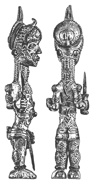 ⠀⠀ ⠀⠀ ⠀⠀ ⠀⠀ Бушмены в отличие от готтентотов низкорослы, ниже метра шестидесяти. Остальные же признаки у них общие: темно-желтая до красноты кожа, сильно вьющиеся, разделенные на пучки и стоящие торчком волосы, ярко выраженная приверженность, особенно у женщин, к стеатопигии, то есть, хотя это звучит и не очень привлекательно, к сильному развитию подкожного жирового слоя на бедрах и ягодицах. Жители суданской области, на которых пока направлен наш интерес, представлены множеством этнических групп, но лишь некоторые из них можно назвать многочисленными. На севере Нигерии и юге Республики Нигер это народ хауса, занимающийся преимущественно земледелием; в городах хауса освоили профессии ремесленников и купцов. По численности за ними идут фульбе, живущие на территории центрального Сенегала, центральной Гвинеи, Мали, на юге Нигера, в Нигерии и центральном Камеруне. Вместе с родственным им народом тукулер они занимаются и земледелием и скотоводством. Народы йоруба и акан являются преимущественно земледельцами и живут в лесной зоне побережья Гвинейского залива; этническая группа игбо, обитающая на юго-востоке Нигерии, предпочитает выращивание корнеплодов и рыбную ловлю. Многочисленные моей, живущие в Буркина-Фасо и северной Гане, и мандинго, расселившиеся в глубинных областях Сенегала, Гвинеи и Кот-д’Ивуара, а также в Мали, занимаются в основном земледелием. ⠀⠀ ⠀⠀ ⠀⠀ ⠀⠀ Деревянная чаша, в которой хранились пальмовые зерна, предназначенные для религиозных целей, Йоруба (Западная Африка)