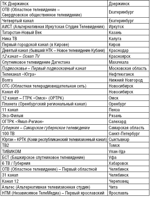 Таблица 3 Основные группы региональных эфирных телеканалов в 33 крупных и средних городах России (осень 2012 г.)