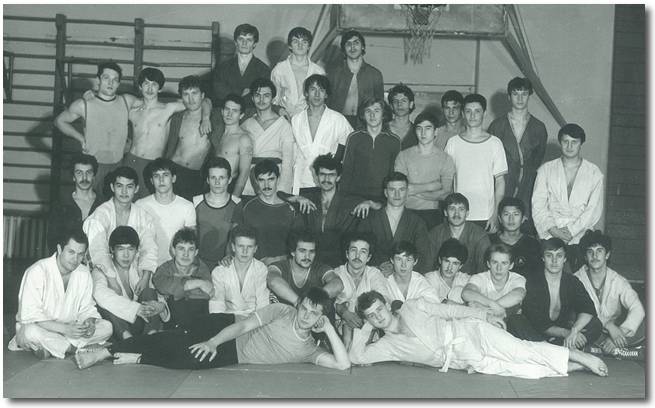 1988 г. Новосибирск. ОФП РТФ НЭТИ. Зал борьбы НЭТИ (крайний слева сидит тренер С. Заяшников)