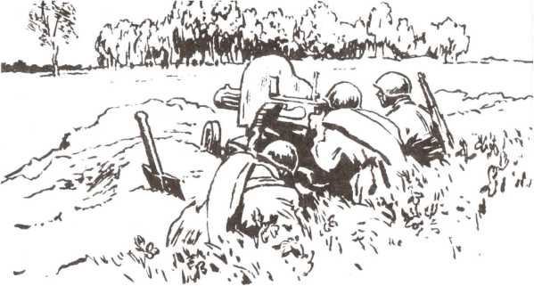 Сумерки успели перекрасить дальний сосновый бор в лиловый цвет, трава стала серой, щиток пулемета — черным, а на предвечернем небе обозначилась луна. Пулеметчик Лоскутов сидел на бруствере окопа. Он неторопливо достал кисет, скрутил цигарку, сделал несколько затяжек и повел рассказ дальше: — Мартынов — это такой человек, что если о нем подробно напечатать в газете, то одной страницы никак не хватит, а скорей всего, придется уделить ему две страницы, а то и всю газету. В мирное время Мартынов Иван Климентьевич работал где-то по театральной части — освещал спектакли цветными лампами. Рассвет на сцене показать или заход солнца — это была его обязанность. И хотя Мартынов человек театральный, но пулеметчик из него получился стоящий. А если кто в этом сомневался, то лишь до тех боев, которые наш расчет принял у рощи «Огурец» и еще у рощи «Подкова». Иван Климентьевич с вечера перебрал весь пулемет, смазал, зарядил, он пулемет наш «Максим Максимычем» звал. Приготовили запасные позиции как полагается. Поселились на высотке — клевер, волшебный запах от него. Фашисты крестили изо всех родов оружия. Но ночь — августовская, черная, и били они больше для психологии. Лежит Мартынов в окопе, на звезды смотрит и медленно так говорит: «Со мной парторг роты вчера беседовал. Заявление я уже написал… В кармане держу». — «Поздравляю, Иван Климентьевич, сердечным образом, — говорю. — Давно тебя наставлял». Тогда Мартынов и говорит: «А мог бы ты мне, Лоскутов, например, рекомендацию дать?» — «Какой же вопрос, — говорю. — Давно предлагал. Разве мы не за одним щитком лежим? Разве нам обоим не свистят одни и те же пули? Не воюем вместе согласно приказу?» Мартынов приподнялся на локте, повернулся ко мне и со значением говорит: «Вот и я хочу, чтобы мне приказы давали по всем статьям: от командования и по партийной линии…» Спали мы в очередь. Когда развиднелось, я достал карандаш, бумагу и написал Мартынову рекомендацию. Но передать ту рекомендацию мне не пришлось, потому что бой взялся сразу, — небу стало жарко и нам горячо. Мартынов наводил, я — на своей должности, вторым номером. Подносчиком хлопотал Микола Ковш. Фашисты накапливались в роще «Подкова» для контратаки, но Иван Климентьевич никак не позволял им подняться с травы. Ведь это не только пулеметчик, а, можно сказать, заслуженный артист. Слева росло горбатое деревцо, ориентир четыре. Возьмет Мартынов это деревцо на мушку, откроет огонь и плавно так, без рывков, не нажимая на ручку затыльника, поведет вправо. Рассеивание давал во всю ширину рощи — фашистам было на что обижаться: валились, как трава под острой косой, и земля на том лугу намокла от крови. Эх, не видели вы мартыновской работы! — печально сказал Лоскутов, соболезнуя мне как человеку, который пропустил в своей жизни что-то очень важное и который уже никогда не наверстает упущенного. — Окопались мы, как полагается, надежно. Иван Климентьевич, помню, наш окоп называл «суфлерской будкой». Ствол у «Максим Максимыча» раскалился, теплый воздух от него легким облачком подымается. Мартынов достал флягу с питьевой водой, отхлебнул глоток, дал пригубить нам обоим, а все остальное вылил в кожух. Осторожно лил, капли мимо отверстия не пронес. Но вот когда уже стал завинчивать пробку наливного отверстия, ударила Ивана Климентьевича пуля. Прижал он руку к груди, 