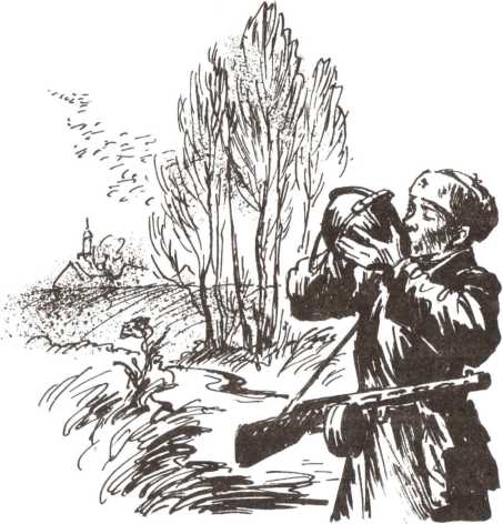 Может быть, Григорий Архипович Глухарев немногословен от рождения. Но скорее всего, здесь сказались четыре зимовки на Крайнем Севере. Глухарев работал поваром полярной станции, затерянной в белом безмолвии Арктики. Помимо молчаливости, присущей всем полярникам, он привез оттуда хорошую привычку рассчитывать во всем только на свои силы. Эта привычка оказалась как нельзя более полезной на войне, потому что в поваренной книге нельзя найти рецепта, как доставить кашу на передовую, когда немцы простреливают каждый метр дороги, а таких метров сотни, и, по выражению Глухарева, «огонь такой, что воздуха совсем не видно». В помощниках у него хлопотал Николай Бондарин, разбитной и шумливый парень. Он появился на кухне, когда батальон стоял в обороне. В те дни можно было пройти с термосом по траншее чуть ли не до боевого охранения, туда, где большак повертывал к югу и где одиноко маячил на бугре расщепленный телеграфный столб. Жизнь шла тихо, без особых происшествий, и, может быть, поэтому Бондарин явно тяготился своей кухонной должностью. — Да меня, Григорий Архипович, судомойки в Гранд-отеле засмеют, если узнают, что я с половником в руках воюю. Бондарин сделал паузу, ожидая возражений, но Глухарев промолчал. — Ты, Григорий Архипович, не обижайся, — сказал Бондарин решительно. — Все равно на передовую уйду. — Кухня — тоже огневая точка… — несмело возразил Глухарев. — Рассказывай! — запальчиво перебил Бондарин. — Приделай к своему половнику оптический прицел и запишись в снайперы. Сразу все немцы разбегутся!.. Глухарев тяжело вздохнул и, по обыкновению, промолчал. Ему не хотелось ввязываться в спор со своим горластым помощником. До войны Бондарин работал в первоклассных ресторанах Москвы, готовил изысканные блюда и любил оглушать Глухарева названием деликатесов. — Котлеты «деволяй» готовятся на два вкуса, — поучал Бондарин. — Есть котлеты «деволяй» по-киевски и котлеты «деволяй жардиньер». — Высокие блюда, — соглашался Глухарев или почтительно молчал, потому что не был искушен в ресторанных тонкостях и признавал тут превосходство помощника. Чем Глухарев, в свою очередь, мог удивить Бондарина? Разве что рецептом жаркого из мяса белого медведя. Мясо имеет неприятный привкус и запах ворвани, которые дает главным образом жир, и поэтому полярники едят медвежатину, очистив ее от жира… Кухня стояла летом близко от передовой, в овраге, поросшем кустарником. Топку Глухарев упрямо не гасил, не желая запаздывать с обедом. Когда немцы по дымку начинали обстреливать кухню, Глухарев переезжал на другое место. Но Бондарина эти маленькие приключения интересовали мало, и дело кончилось тем, что он упросил комбата отпустить его к пулеметчикам, на передовую. Помощником повара назначили ездового Шарипова. Глухарев по-прежнему кормил солдат сытно и вкусно. Автоматчики подарили ему зимний маскировочный халат. — Чистота — залог здоровья, — сказал командир взвода Огурцов, преподнося повару белый халат. — Маскируйся на здоровье у своей огневой точки. Глухарев тут же надел халат, поднял капюшон и завязал его на затылке шнурком, так что капюшон стал походить одновременно и на чалму, и на бабий платок. — В таком халате хорошо на белого медведя ходить, — сказал довольный Григорий Архипович. — Для незаметности в снегу… Пока батальон находился в обороне, Бон
