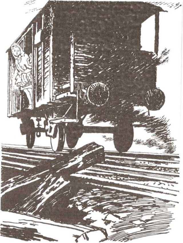«Клоков Алексей Петрович. Год рождения 1912. Боец железнодорожного транспорта. Пал смертью храбрых при доставке особого груза в освобожденные районы. Дети, школьники, не забывайте его! Он вез вам книжки из Москвы».Поставили нас снова в хвост эшелона. Едем вдвоем с Дашуткой. Молчим. Все про Алешу думаем. За что ни возьмусь — все его не хватает. Какой разговор ни начнем, обязательно Алешей кончим. И не верится мне никак, что нет уже его совсем. Все думается, сейчас на полустанке вскочит, чего в газетах новенького, расскажет, Дашку потормошит… Через два дня к вечеру прибыли мы в Казявино. Станция забита составами. С фронта идут, груженные всякой железной рванью, — танки на них немецкие «тигры», пушки «Фердинанды». К фронту составы следуют, военного назначения. И всякий товар гонят для освобожденных районов, где народ изголодался. Тут и хлеб, и цистерны, и тёс. Отсюда наш эшелон к фронту поворачивал. Попрощались мы с начальником эшелона за руку, пожелали друг другу счастливого пути. Отцепили нас, поставили на запасный путь, ушел эшелон. Опять я бегаю по станции, хлопочу, требую срочной отправки. А уж ночь опустилась, и дождь идет. На станции хоть глаз выколи. Полное затемнение. Да немцы еще недавно тут нахозяйничали перед уходом. Кругом рельсы вывороченные валяются, шпалы расколотые, щебень, железные балки, вагонные скаты. И днем-то еле пройдешь. А тут ни зги не видать. Бегаю я по путям, натыкаюсь на всё. А фонарь у меня, как на грех, ветром задуло. И вдруг мне говорят у блокпоста: — Идите скорей, ваш вагон давно прицеплен, отправляют. Побежал я обратно на пути. Нет нигде моего вагона. Не могу найти. Сюда бегу, туда кидаюсь. А в темноте разобрать ничего невозможно. Ношусь я как сумасшедший по станции, чуть не плачу. Спрашиваю всех: «Не видали вагон номер 172–256, с одного боку горелый?» Нет, никто не видал. Да и разве разглядишь тут что-нибудь, в эдакой темноте! А дождь льет все пуще и пуще. Вымок я до самых внутренностей. Дрожу весь, как осина. Забежал я куда-то на пути, где уж и народу нет, спросить некого. Только ветер в темноте рваным железом погромыхивает. Слышу: состав какой-то пошел, и как раз в ту сторону, куда и нам отправляться. Бегу я между составами, а слева и справа, навстречу и вдогонку колеса постукивают. Стой, погоди! Вот он, мой вагон, обгорелый сбоку, и площадка тормозная. Обогнал меня. Еле уцепился на ходу за поручни, навалился на площадку, кое-как влез. Ну слава тебе господи! — Дарья! — кричу я в вагон. — Жива, здорова? Заждалась, чай… Ай, Дашутка! Ты что, заснула, что ли? Не отвечает. И тихо в вагоне, нет никого, пусто. Упало у меня сердце. Ах, Дашка ты, Дашка! Вот и понадейся на тебя. А обещала сторожить. Заждалась, должно быть, бедняжка, пошла искать меня да и заблудилась. Где уж тут девчонке найти, когда я и сам-то целый час плутал! Жалко мне стало девчонку, да что же делать? Где же ее теперь искать? Ясно, отстала Дашка. А меня всего трясет. Промок очень. И до того пальцы застыли — фонаря зажечь не могу. Решил я сперва согреться. Пошарил в углу: стояла там у меня припасенная заветная поллитровочка. Еле нашел — упала, откатилась к другой стенке. Выбил я пробочку, крякнул, хлебнул — полезли у меня глаза под самые брови. Батюшки! Да что это такое? Всякого я в жизни пробовал, самого крепкого… Маляры меня раз было политурой угощали — ничего… А другой раз музей эвакуировал