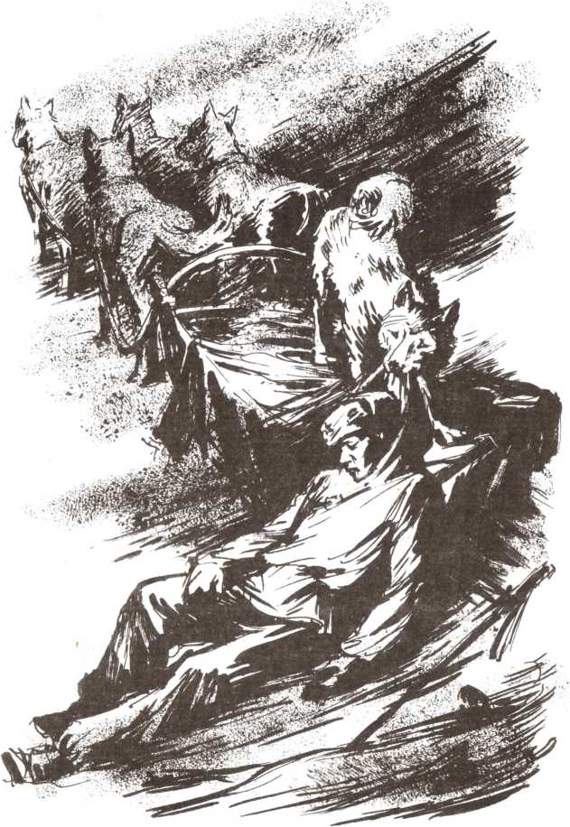 И при такой опасности высовывается из двери вагонной Дашутка наша, кубарем скатывается вниз и бежит по шпалам прямо к броневику. Пули вокруг нее чиркают об рельсы, щелкают, того и гляди, зацепят. — Дашка, дура, ложись сейчас же! Куда полезла?.. А она подбегает прямехонько к броневику. Оттуда из люка командир показался. — Дядя, — кричит Даша, — дяденька, зацепляйте нас скорее, везите! А то мы сейчас пропадем совсем. Я тоже на карачках подобрался туда. Встать боюсь: очень уж много надо мной этих свинцовых пчел летает. Стою на четвереньках, вернее будет сказать, на трех точках: правую-то руку к шапке приложил, честь честью, все-таки ведь с командиром говорю. — Товарищ дорогой, разреши обратиться?.. Сделай милость, подсоби! Правительственный груз везу, чрезвычайного назначения, от самого народного комиссара. Вызволяйте! Хоть девчонку примите! — Погоди! Что за груз такой? Быстро! — Да, — говорю, — извиняюсь, книжки везем. Очень интересные. — Хватит! Ясно. Вас и требуется нам. Меня командир с разъезда за вами отрядил. Живо прыгай в вагон к арифметикам своим! — приказывает командир. — Это чья девчонка? Твоя? Что ж она у тебя без надзора под пулями бегает? Ну, быстро! Выскакивают из бронемашины двое, скидывают с пути обломки. Броневик подают к моему вагону. Орудие в башне туда-сюда дуло водит, палит, аккуратненько немцам порции выдает. А тем временем бойцы толстой цепью прикручивают мой вагон к своему крюку. — Живо давай, быстро! — приказывает командир, а голос у него громче пушки. — Поворачивайся, Ткаченко, не возись! А я кричу из-под вагона: — Клоков! Алеша! Давай сюда скорее. Отправляемся! Не отвечает Клоков. Побежал я, пригибаясь, к тому месту, где Алеша за насыпью отстреливался. Подбежал туда да и сам повалился на землю. Лежит мой Алексей, головой уткнулся в рельс, а с рельса на шпалу кровь сочится… — Алеша, Алеша! — кричу. — Ты что, Алеша? Это я, слышишь? Гурыч это. Командир из бронемашины зовет: — Эй, кондуктор, как тебя там!.. Долго ты будешь? Я тебя ждать не собираюсь. Я кричу: — Товарищ командир! Помощника моего ранило, напарника… Подсобите, — прошу. Подскочили два бойца, взяли Алешу на руки, а я ему голову пробитую поддерживаю. Подняли мы его в наш вагон, влезли и сами с Дашуткой. Загремела машина, тронулась, посыпались у нас учебники в вагоне, и пошел наш во всем мире невиданный поезд со станции. Впереди броневик, а за ним наш вагон. Много я в своей жизни поездил, всю Россию проколесил, а таким манером еще сроду не ездил. Не приходилось. Гремит впереди бронемашина, несемся мы за ней. Прыгает вагон на стыках, шатает его из стороны в сторону, вот-вот с откоса вниз грохнется… Но мне не до того. Я с Алешей бьюсь. Мне бойцы свой индивидуальный пакет дали, с марлей там, с ватой. Дашутка мне подсобляет, а у самой зубы стучат, хоть она их стиснуть старается и все норовит отвернуться, чтобы на кровь Алешину не глядеть. — Ты уж подержись, Дашенька, — говорю, — не обмирай. Раз попали мы с тобой на войну, так тут «агу — не могу» позабудь. Не маленькая. — Жалко мне очень, — говорит. — Вдруг если опасно!.. А? Дядя Гурыч?.. Забинтовали мы Алеше голову, как умели. Я ему подложил книжки, чтобы повыше было, тулуп подстелил. Молчит Алеша. Только, когда тряхнет вагон на стыке, стонет тихонечко. И как это его угораздило под пулю попасть, вот ведь горе какое! — Клоков! Алешка!.. — говорю ему я в сам