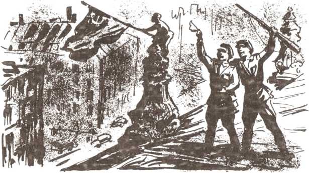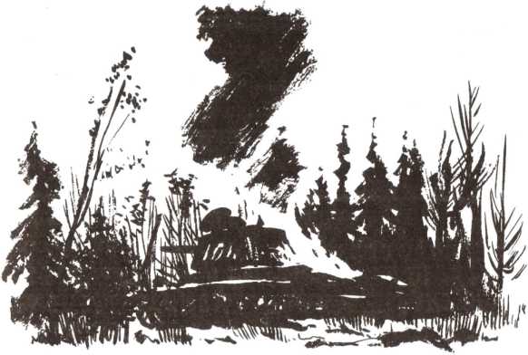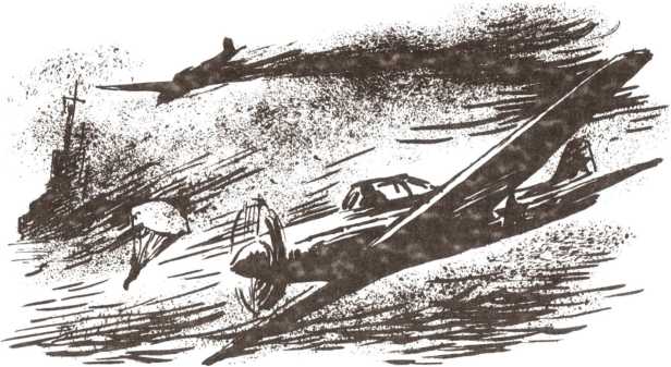 Дым проник в кабину, дышать стало нечем, и захотелось сорвать с головы потяжелевший шлем, будто именно он затруднял дыхание. Мартынов дернул за красную рукоять справа от сиденья и сорвал колпак. Когда летчик срывает колпак со своей кабины, то подает последний сигнал бедствия. Морозный воздух, плотный, как лед, ворвался в кабину горящего самолета и ударил в лицо. Мартынов и его штурман Армашев были очень близко от линии фронта, но летели еще над территорией, занятой врагом, и потому считали для себя парашюты противопоказанными. Может, все-таки удастся дотянуть до своих? Ведь несколько минут лету, всего несколько минут — и машина перетянет через линию фронта. Но огонь уже перекинулся по бензопроводке к правому мотору, и тот задымил багрово-черным дымом. Пламя заплясало на плоскости, знойный чад обжигал дыхание пилота и штурмана. Мартынов и Армашев объяснялись при помощи рук: когда четыре «Фокке-Вульф-190» атаковали «Петляков-2», изрешетили его пулями, отказало переговорное устройство. Однако напоследок Мартынов услышал сообщение штурмана: — Бомбы сбросил. Семьсот килограммов взрывчатки были точно обрушены на скопление автомашин у моста, и машины разметало во все стороны, как игрушечные. Сперва Мартынов изо всех сил тянулся за восьмеркой своих бомбардировщиков — они направлялись домой, на свой аэродром, — но потом передумал и отвернул в сторону. Сейчас лучше не пристраиваться к своим, чтобы не навести на их след противника. Мартынов представлял себе, какой шлейф черного дыма тянется за его искалеченной машиной. Внизу виднелся бескрайний лес с редкими полянами и прогалинами. Ни одной подходящей посадочной площадки! Впрочем, они пока еще не собирались садиться. Армашев то и дело с тревогой всматривался в карту, тыкал в нее пальцем, указывал пилоту точку, над которой они находятся. Наконец Армашев поднял руку, растопырив пальцы, и Мартынов понял, что их отделяют от линии фронта пять километров, всего пять километров! Но было уже поздно. Мартынов до отказа перекрутил штурвал влево — все равно машина валилась вправо. Затем правая плоскость, вся в огне, начала разламываться. Оба поняли, что это — конец. Мартынов выключил моторы над самыми верхушками елей и начал планировать на заснеженную поляну, белевшую неподалеку. Шасси Мартынов не выпускал: он решил поставить под удар крыло и тем самым смягчить падение самолета. Снег на поляне лежал глубокий, машина проскользила немного, зарылась в снег и остановилась. Армашев, который сидел позади пилота, могучим плечом уперся в спинку переднего сиденья и крепко обхватил Мартынова за грудь, чтобы того не бросило о доску приборов или о прицел. Даже в момент страшного удара о землю Мартынов не выскользнул из этих дружеских объятий. Колпак был сорван, и потому кабину всю, до краев, забило снегом. Он засыпал летчиков с головой. Выкарабкались почти одновременно. Их оглушила неслыханная лесная тишина. — Жив?! — воскликнул Мартынов тоном вопроса и счастливого утверждения, когда Армашев вслед за ним выпрыгнул из кабины в глубокий снег. — Кажется, не умер, — солидно пробасил Армашев. Оба огляделись, торопливо отстегнули парашюты и заторопились к лесу, увязая по пояс в снегу. Оба проклинали глубокий снег, тот самый снег, который спас их, потому что самортизировал удар о землю. С минуты на минуту могли взорвать