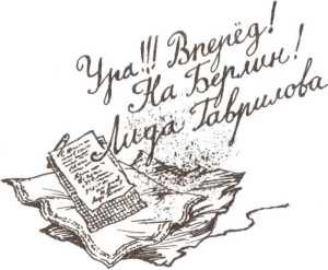 И что вы думаете — ведь сдержал свое слово. — Неужели и в Берлине побывали? — И в Берлине, представьте, привелось побывать. А главное ведь, что я действительно до самого Берлина не открыл этого пакетика. Полтора года с собой его носил. Тонул вместе с ним. В танке два раза горел. В госпиталях лежал. Три или четыре гимнастерки сменил за это время. А пакетик все со мной — неприкосновенный. Конечно, иногда любопытно было посмотреть, что там лежит. Но ничего не поделаешь, слово дал, а солдатское слово — крепкое. Ну, долго ли, коротко ли, а вот наконец мы и в Берлине. Отвоевали. Сломали последний вражеский рубеж. Ворвались в город. Идем по улицам. Я — впереди, на головном танке иду. И вот, помню, стоит у ворот, у разбитого дома, немка. Молоденькая еще. Худенькая. Бледная. Держит за руку девочку. Обстановка в Берлине, прямо скажу, не для детского возраста. Вокруг пожары, кое-где еще снаряды ложатся, пулеметы стучат. А девчонка, представьте, стоит, смотрит во все глаза, улыбается… Как же! Ей небось интересно: чужие дяди на машинах едут, новые, незнакомые песни поют… И вот уж не знаю чем, а напомнила мне вдруг эта маленькая белобрысая немочка мою ленинградскую детдомовскую приятельницу. И я о пакетике вспомнил. «Ну, — думаю, — теперь можно. Задание выполнил. Фашистов разбил. Берлин взял. Имею полное право посмотреть, что там…» Лезу в карман, в гимнастерку, вытаскиваю пакет. Конечно, уж от его былого великолепия и следов не осталось. Весь он смялся, изодрался, прокоптел, порохом пропах… Развертываю пакетик, а там… Да там, откровенно говоря, ничего особенного и нет. Лежит там просто платочек. Обыкновенный носовой платочек с красной и зеленой каемочкой. Гарусом, что ли, обвязан. Или еще чем-нибудь. Я не знаю, не специалист в этих делах. Одним словом, вот этот самый дамский, как вы его обозвали, платочек. И полковник еще раз вытащил из кармана и разгладил на колене свой маленький, подрубленный в красную и зеленую елочку платок. На этот раз я совсем другими глазами смотрел на него. Ведь и в самом деле, это был платочек непростой. Я даже пальцем его осторожно потрогал. — Да, — продолжал, улыбаясь, полковник. — Вот эта самая тряпочка лежала, завернутая в тетрадочную клетчатую бумагу. И к ней булавкой пришпилена записка. А на записке огромными корявыми буквами с невероятными ошибками нацарапано: