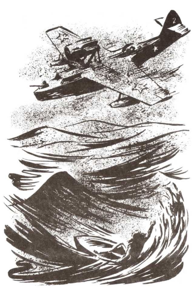 Быстро темнело, и катера он заметил только по белым бурунчикам. Он подлетел к ним ближе. Они стремительно шли кильватерной колонной, [31] рассекая волны, тонкие радиомачты раскачивались. С катеров заметили его самолет, и он повел их прямо к Седову, то залетая вперед, то возвращаясь. До Седова оставалось не больше двух километров, как вдруг катера замедлили ход. Они перестроились, слегка отступили и начали медленно обходить Седова по большой дуге. Эта непонятная задержка вывела Лукина из себя. Темнота сгущалась каждое мгновение; через несколько минут он уже и сам не найдет Седова. Не имея возможности разговаривать по радио с командиром катеров, он связался с командным пунктом своего полка. Может быть, там что-нибудь знают. С командного пункта полка позвонили на базу катеров, а тем временем, пока тянулись эти переговоры, все три катера повернули и пошли прочь, в открытое море. Лукин в отчаянии и бешенстве кружил над ними. Наконец с командного пункта полка ему сообщили: — Мины. — Какие мины? — Море в этих местах заминировано. Седов находится в самой середине минного поля. Катера подойти к нему не могут. Вот если бы не так темно… Все это было как колдовство. Словно заколдованный, сидел Седов в своей резиновой лодочке, и снять его оттуда не было никакой возможности. Совсем стемнело. Лукин больше не видел ни волн, ни Седова. Дальнейшие попытки спасения приходилось отложить до утра. Лукину оставалось только одно — вернуться на аэродром. В мучительной тоске летел он над темным морем, над темным лесом. Мины Седову не страшны: лодочка его слишком легка, чтобы подорваться на мине. Не страшны ему пока и «фокке-вульфы»: они не найдут Седова в темноте да и не станут искать. Вот разве на рассвете… Но увидит ли еще Коля Седов этот рассвет? Его или перевернет волной, или вынесет на берег, к немцам… Сдав самолет технику, Лукин, не ужиная, побрел по темному пустынному аэродрому к кубрику. Морские летчики, подобно морякам, то помещение, в котором спят, называют кубриком. Обычно это просторная землянка на краю аэродрома, защищенная от вражеских бомб тремя-четырьмя накатами толстых бревен. В кубрике, где жил Лукин, горела яркая электрическая лампа, озарявшая девять коек. Летчики уже поужинали и только что пришли из столовой. В столовой они слушали московскую радиопередачу, полную подробностей взятия Берлина, и обсуждали ее, рассаживаясь по своим койкам. Они все уже знали о несчастье с Седовым и, увидев Лукина, примолкли. Они любили Седова, боялись за его судьбу и жалели, что в такой счастливый день его нет вместе с ними. Им было жалко и Лукина: лысеющий, пожилой, с утомленным лицом, он, казалось, осунулся за этот день и еще постарел. Они стали убеждать его, что, пока Седов жив, еще не все пропало, и советовали ему пойти поужинать. Но Лукину совсем не хотелось есть. Не раздеваясь, он лег на свою койку. Койка Седова была пуста. Лукин всегда спал рядом с Седовым, между ихкойками стояла только небольшая тумбочка, вроде шкафчика, служившая им обоим. Лукин привык видеть совсем близко голову Седова с раскинутыми по подушке почти желтыми волосами, привык слышать его дыхание. Дверца тумбочки была выломана, и там внутри, на виду у всех, лежали вместе мелкие вещи Лукина и Седова. У Лукина вещей было мало: зубная щетка, бритвенный прибор; зато Седов хранил в тумбочке много всяких пустя