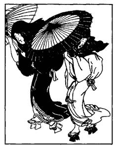 Гэндзи, не сходя с коня, обратился к девушке: – Почтенная крестьянка, мне сказали, что где-то здесь проживает прославленная в Эдо красавица. Не укажешь ли ты мне путь к ее обиталищу? – Эдо отсюда далеко, – откликнулась Хэйко, – красота мимолетна, а всякое жилище непрочно. Не угодно ли вам будет лучше испробовать моего горячего супа, чтобы спастись от зимнего холода? – Взмахом руки она указала на сад. – Я приготовила его из этих вот зимних дынь. Хэйко никогда бы не оделась столь неизящно, если б ей хоть на миг пришло в голову, что Гэндзи может появиться здесь. Но ведь сегодня утром его внимание было всецело приковано к чужеземцам. Гэндзи даже специально отправился в порт, чтобы встретить их. Все указывало на то, что нынешний день он проведет в городе. Однако же не прошло и полдня, как он, судя по нынешнему его виду, отправился на охоту, напрочь позабыв о чужеземцах. Хэйко была охвачена смятением – и вместе с тем радостью. Гэндзи жив, и она тоже, и они снова вместе. После того, что рассказал ей Кумэ, Хэйко с особенной остротой ощущала, насколько же драгоценны подобные мгновения. – Твое умение обращаться с землей воистину удивительно, – сказал Гэндзи. – Несомненно, в более гармоничном мире, чем наш, женщина, владеющая таким искусством, будет цениться куда выше, чем женщина, сведущая лишь в постельных утехах. – Вы слишком добры ко мне, господин. – Хэйко низко поклонилась, чтоб скрыть выступивший на щеках румянец. – Но я не стану более вас задерживать. Ведь вам, конечно же, не терпится поскорее встретиться с вашей прославленной госпожой. – Суп из зимних дынь или легендарная красавица, – промолвил Гэндзи. – Воистину, нелегкий выбор. Смущение Хэйко забавляло его. Гейша всегда так уверена в себе! Теперь же на ней не было роскошных нарядов – лишь скромная одежда да тяпка в руках. Ни дать ни взять простая крестьянка! Это ведь в первый раз он застал ее врасплох? Да, действительно, в первый. И потому Гэндзи намеревался по возможности продлить развлечение. – Мудрый человек всегда выбирает суп, – сказала Хэйко, – особенно в такой холодный день. Самодовольный вид Гэндзи раздражал ее. Но если показать это, он будет веселиться еще больше. Нет уж, не дождется! – Почему же? Истинная мудрость должна вести к красоте, разве не так? Что лучше согреет душу и тело? Да, правда, он застал ее в простонародной одежде и с ненакрашенным лицом. Но восторжествовал ли он? Блестящие волосы струились по спине девушки, словно у какой-нибудь принцессы эпохи Хэйан. А отсутствие пудры, румян и прочих ухищрений нисколько не умаляло ее красоты. Напротив, природный цвет и очертания лица, обычно скрытые косметикой, оказались столь прекрасны, что Гэндзи был потрясен. – Осмелюсь предположить, что кто-то ввел господина в заблуждение, – сказала Хэйко. – Красота может быть холоднее, чем зимний день. Согревает не красота, а любовь. – Хорошо сказано, почтенная крестьянка. – Гэндзи успокоил коня, начавшего горячиться от долгого стояния на месте. – От куртизанок Эдо я никогда не слышал столь мудрых слов. Ни от кого из них – кроме одной-единственной. – Господин слишком добр. Хэйко улыбнулась Гэндзи. Этим простеньким комплиментом он спас ее достоинство. – Это ты слишком добра, – улыбнулся в ответ Гэндзи, – и слишком прекрасна, чтоб, ы скрываться в этой роще. Скоро сюда прибудет всадник и приведет дву