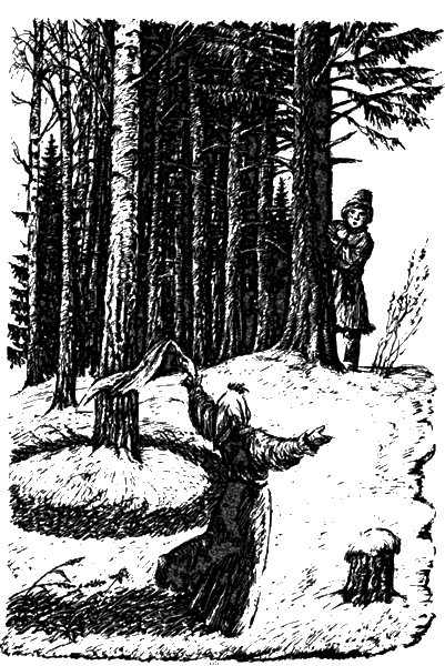 Росли в нашем заводе два парнишечка, по близкому соседству: Ланко Пужанко да Лейко Шапочка. Кто и за что им такие прозванья придумал, это сказать не умею. Меж собой эти ребята дружно жили. Подстать подобрались. Умишком вровень, силенкой вровень, ростом и годами тоже. И в житье большой различии не было. У Ланка отец рудобоем был, а у Лейка на золотых песках горевал, а матери, известно, по хозяйству мытарились. Ребятам и нечем было друг перед дружкой погордиться. Одно у них не сходилось: Ланко свое прозвище за обиду считал, а Лейку лестно казалось, что его этак ласково зовут — Шапочка. Не раз у матери припрашивал: — Ты бы, маменька, сшила мне новую шапку! Слышишь — люди меня Шапочкой зовут, а у меня тятин малахай, да и тот старый. Дружбе ребячьей это не мешало. Лейко первый в драку лез, коли кто обзовет Ланка Пужанком: — Какой он тебе Пужанко? Кого испугался? Так вот и росли парнишечки рядком да ладком. Рассорки, понятно, случались, да не надолго. И то у ребят вровень пришлось, что оба последними в семьях росли. Повольготнее таким-то. С малыми не водиться. От снегу до снегу домой только поесть да поспать прибегут. Мало ли в ту пору у ребят всякого дела: в бабки поиграть, в городки, шариком, порыбачить тоже, покупаться, за ягодами, за грибами сбегать, все горочки облазить, пенечки на одной ноге обскакать. Утянутся из дому с утра — ищи их! Как вечером прибегут домой, так на них поварчивали: — Пришел, наше шатало! Корми-ко его! Зимой по-другому приходилось. Зима, известно, всякому зверю хвост подожмет и людей не обойдет. Ланка с Лейком зима по избам загоняла. Одежонка, видишь, слабая, обувка жиденькая — недалеко в них ускочишь. Только и хватало тепла из избы в избу перебежать. Чтобы большим под руку не подвертываться, забьются оба на полати, да там и посиживают. Двоим-то все-таки веселее. Когда и поиграют, когда про лето вспоминают, когда просто слушают, о чем большие говорят. Вот раз сидят этак-то, а к Лейковой сестре Марьюшке подружки набежали. Время к Новому году подвигалось, а по девичьему обряду в ту пору про женихов ворожат. Девчонки и затеяли такую ворожбу. Ребятам любопытно поглядеть, да разве подступишься! Близко не пускают, а Марьюшка по-свойски еще подзатыльников надавала: — Уходите на свое место! Она, видишь, эта Марьюшка, из сердитеньких была. Который год в невестах, а женихов не было. Девушка будто и вовсе хорошая, да маленько косоротенька. Изъян вроде и не велик, а парни все же браковали ее из-за этого. Ну, она и сердилась. Забились ребята на полати, пыхтят да помалкивают, а девчонкам весело. Золу сеют, муку по столешнице раскатывают, угли перекидывают, в воде брызгаются. Перемазались все, с визгом хохочут одна над другой. Только Марьюшке невесело. Она, видно, изверилась во всякой ворожбе, говорит. — Пустяк это. Одна забава. Одна подружка на это и скажи: — По-доброму-то ворожить боязно. — А как? — спрашивает Марьюшка. Подружка и рассказала: — От бабушки слыхала, самое правильное гаданье будто такое. Надо вечером, когда все уснут, свой гребешок на ниточке повесить на сеновале, а на другой день, когда еще никто не пробудится, снять этот гребешок — тут все и увидишь. Все любопытствуют — как? А девчонка объясняет: — Коли в гребешке волос окажется — в тот год замуж выйдешь. Не окажется волоса — нет твоей судьбы. И про то догадаться можно, какой волосом муж будет. Лан