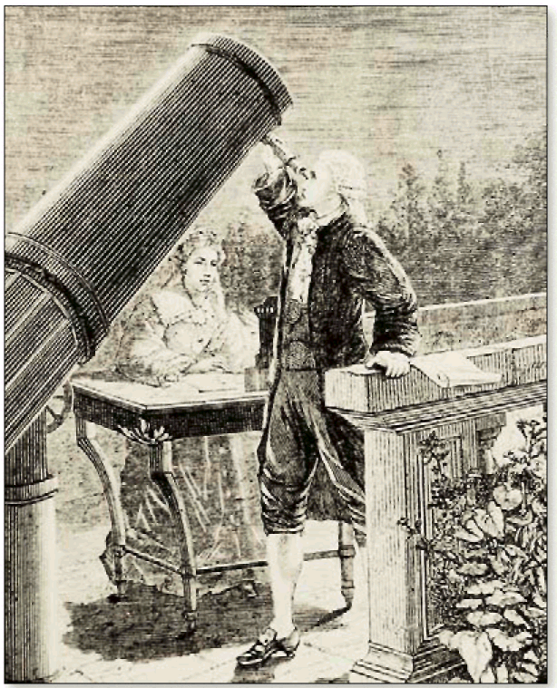 — Тридцатишестилетний Уильям Гершель построил телескоп с 500-кратным увеличением и начал систематические наблюдения. Денег ему за это не платили, но он следовал велениям души, которая не могла жить без звёзд. Сестра ассистировала ему и вела записи.