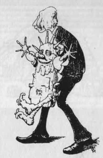 Минут через двадцать знакомое дергание за пиджак, легкое царапание ногтем и шепотом: — Дядя! Я знаю сказку. Отказать ей трудно. Глаза сияют, как звездочки, и губки топырятся так смешно… — Ну, ладно. Излей свою наболевшую душу. — Сказка! Жила-была девочка. Взяла ее мама в сад, где росли эти самые… груши. Влезла на дерево, а девочка под грушей сидит. Хорошо-о. Вот девочка и спрашивает: «Мама! Груши имеют лапки?» — «Нет, детка». — «Ну, значит, я курицу слопала!» — Лидка! Да ведь это моя сказка! Дрожа от восторга, она машет на меня руками и кричит: — Нет, моя, моя, моя! У тебя другая. — Лида! Знаешь ты, что это — плагиат? Стыдись! Чтобы замять разговор, она просит: — Покажи картинки. — Ладно. Хочешь, я найду в журнале твоего жениха? — Найди. Я беру старый журнал, отыскиваю чудовище, изображающее гоголевского Вия, и язвительно преподношу его девочке: — Вот твой жених. В ужасе она смотрит на страшилище, а затем, скрыв горькую обиду, говорит с притворной лаской: — Хорошо-о… Теперь дай ты мне книгу — я твоего жениха найду. — Ты хочешь сказать: невесту? — Ну, невесту. Опять тишина. Влезши на диван, Лида тяжело дышит и все перелистывает книгу, перелистывает… — Пойди сюда, дядя, — неуверенно подзывает она. — Вот твоя невеста… Палец ее робко ложится на корявый ствол старой растрепанной ивы. — Э, нет. милая. Какая же это невеста? Это дерево. ТЬг поищи женщину пострашнее. Опять тишина и частый шорох переворачиваемых листов. Потом тихий, тонкий плач. — Лида, Лидочка… Что с тобой? Едва выговаривая от обильных слез, она бросается ничком на книгу и горестно кричит: — Я не могу… найти… для тебя… страшную… невесту. Пожав плечами, сажусь за революцию; углубляюсь в чтение. Тишина… Оглядываюсь. С непросохшими глазами, Лида держит перед собой дверной ключ и смотрит на меня в его отверстие. Ее удивляет, что если ключ держать к глазу близко, то я виден весь, а если отодвинуть, то только кусок меня. Кряхтя, она сползает с дивана, приближается ко мне и смотрит в ключ на расстоянии вершка от моей спины. И в глазах ее сияет неподдельное изумление и любопытство перед неразрешимой загадкой природы…«Сатирикон», 1909, № 7