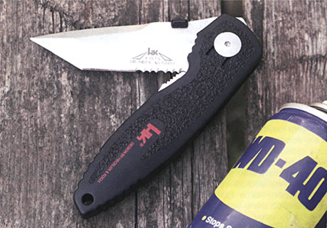 Вопрос не риторический, а практический. Неважно, как часто мы пользуемся ножом. Внимания к себе он требует всегда. Помню, вытаскивает как-то мой друг нож, чтобы перерезать веревку, и… начинает ругаться, на чем свет стоит. Черт, нож тупой как камень! Ведь наточил несколько дней назад, ничего им не делал. Как это понимать?! А дело было в тропиках, настоящее пекло, влажность за 100 % зашкаливает. Воздух липкий, густой — как бабушкин кисель. Удовольствие — то еще! Берег океана всего в нескольких километрах, так что соль на губах чувствуешь постоянно. Вот ржавчина и съела режущую кромку лезвия, хотя клинок был защищен антикоррозионным покрытием. А режущая кромка, конечно, «голая», иначе как же ее точить? Да и много ли ей нужно? Эдакая тонюсенькая пленочка стали, на самой-самой кромке… Но это крайний случай. В российском климате что-нибудь подобное еще поискать надо. Тем не менее и в условиях средней полосы России клинки имеют обыкновение ржаветь, особенно те, которые сделаны из обычной углеродистой стали, особенно в пасмурную погоду, особенно после контакта с химически агрессивной средой, например, кровью охотничьей добычи, активно проливаемой при разделке туш убитых животных. А кислотная дождевая вода? А всякий мусор — от обычной карманной пыли до остатков колбасы, который собирается в закоулках рукояти складного ножа? Все это просто жаждет коррозии и очень охотно ей помогает. Результатом может оказаться проржавение насквозь какой-нибудь хитрой пружинки, без которой нож попросту сложится на пальцы пользователя. Но это еще не конец «ужасов». Французский друг меня удивил, когда я гостил у него в Париже. «Что это у меня такое с ножами делается?» _ спрашивает он. «Вся коллекция ржавеет как черт знает что, если раз в неделю не протру маслом. Рыжий налет на клинках появляется, как будто его в гости звали!» «Посмотри, — говорит, — ты в этом хорошо разбираешься, может быть, что придумаешь?». А большинство клинков у него в коллекции дамасские, но, честно сказать, невысокого качества. Осмотрел я их, но так ничего и не придумал. Нет, конечно, придумал. Отправился в магазин и купил ему в подарок соответствующий препарат, о котором расскажу немного позже. А мораль сей басни такова — о ножах нужно заботиться и в Париже, и в джунглях Индокитая. Главный враг стали — ржавчина, причем ржавеет не только обычная углеродистая сталь. Нержавеющая сталь тоже ржавеет, только в меньшей степени. Но если очень постараться, то и на ней следы ржавчины появятся. Одно время, когда я летом бегал по несколько километров в день, ржавчина появилась на клинке моего Military от Spyderco. Нож я крепил на клипсе к шортам. Ржавчины, конечно, было немного, только пятнышки. Я их поначалу и не заметил. Но удивительно еще и то, что сталь клинка СРМ 440V (у меня еще старый вариант), если верить изготовителю, просто «крепкий орешек» для коррозии. Тем не менее маленькие пятнышки ее, родимой, все равно появились на здоровом теле клинка. Избавиться от них оказалось не так-то просто, хотя в конце концов удалось это сделать. Да и появились они не на всем протяжении клинка, а только в том месте, где он соприкасался с потным телом. Давайте теперь прикинем, что к чему. Нержавеющая сталь подвержена воздействию коррозии менее всего. Чем больше она содержит хрома, тем лучше, чтобы противостоять коррозии. 13–14 % хрома делают 