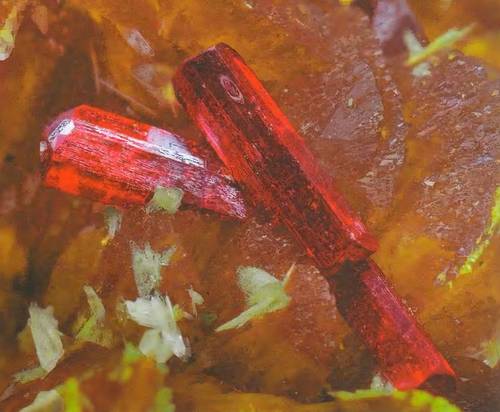 Эти кристаллы, похожие на конфетки, — довольно редкий минерал ванадинит. Он содержит не только ванадий, как следует из названия, но еще и свинец. Так что класть их в рот не рекомендуется