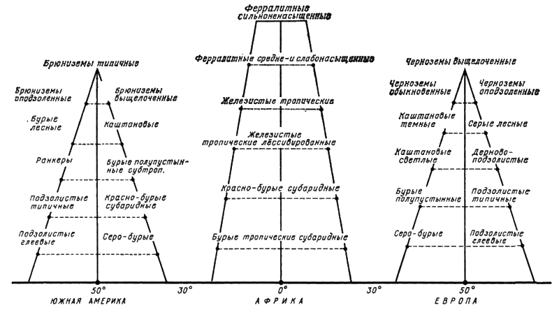 Рис. 12. Модель структуры почвенной поясности в пределах Евразии