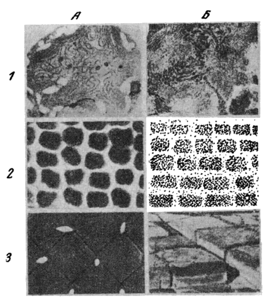 Рис. 32. Примеры изоморфизма клеток растительных и животных тканей (А) и почвенных ареалов (Б)