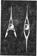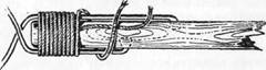 Пока хвост не подсох, в основание его вденьте шпильку. Ее делают из кусочка проволоки длиной около 3– 4 см, заостренной с обоих концов и согнутой, как на рисунке .14 (фиг.1 ). Когда будет вложено в шкурку искусственное туловище из волокнистых материалов, то концы шпильки будут вставлены в него (фиг. 3). Хвост на просушку, расправив перья, надо зажать между двух полосок плотной бумаги (фиг. 3).