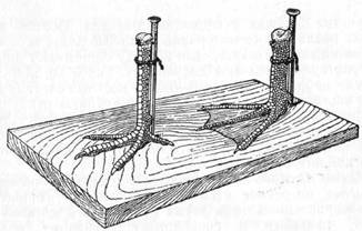 Рис. 49. Расправление на просушку ног птицы.