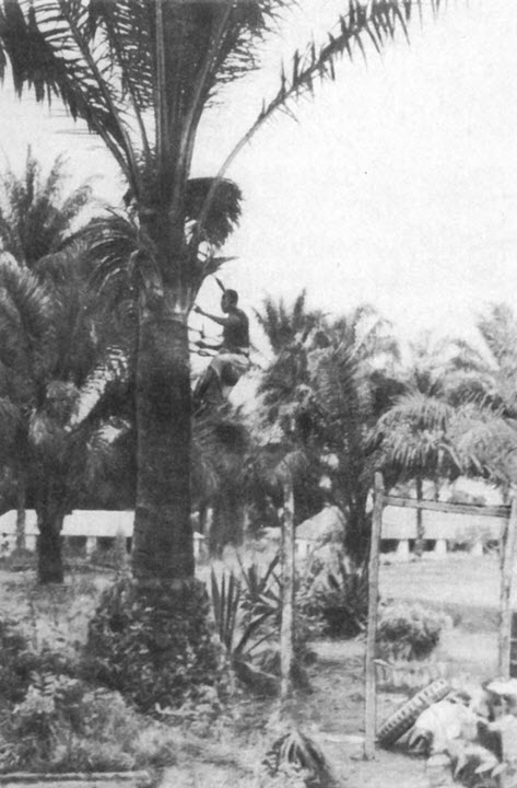 На другой день под вечер (было около четырех часов) мы заметили на расстоянии приблизительно 1 км от лагеря клубы дыма: горела саванна. Через некоторое время стало видно и пламя, поднимавшееся над травой на 2–3 м. Огонь двигался в направлении лагеря. Я подошел к Габриелю Нгуака и попросил его принять необходимые меры для защиты от огня лагеря и имущества отряда. Но никто из рабочих не внял просьбе Габриеля. Одни из них продолжали играть в карты, другие закусывали, а третьи сидели у костра и балагурили. Минут через 20 я снова напомнил Габриелю об угрожающей нам опасности: огонь надвигался на нас лавиной шириной около 80 м. И опять — полнейшее равнодушие к опасности со стороны рабочих! И только когда огонь был метрах в 30, рабочие стали вырубать траву у хижин, а оставшуюся поджигать навстречу пламени, бушевавшему с огромной силой вблизи лагеря. Мои коллеги и я стащили имущество отряда на середину лагеря, свободную от травы. Все документы я сложил в рюкзак и надел его на себя. В это время пламя лизнуло крайнюю слева хижину. И тут как будто какая-то неведомая сила подстегнула рабочих. И куда только делась их флегматичность. С бесстрашием и яростью бросились они на огонь: сбивали пламя ветками, засыпали песком, поливали водой. Хижину удалось отстоять. Пощадив соседние хижины, огонь перекинулся на самую крайнюю, в которой хранились продукты. Но и эту хижину удалось спасти. Теперь огонь приближался к правой половине лагеря. Все бросились туда. Когда языки пламени подошли к хижинам, от травы была уже очищена полоса шириной 2 м. Пламя прошло рядом, опалив наши лица и засыпав палатки черным пеплом. Пострадала только хижина, служившая нам туалетом; она находилась в стороне и вспыхнула, как кучка пороха. Через несколько минут от нее остался только черный остов. Такая судьба была бы уготовлена всем хижинам, если бы не мужество рабочих. Пожар бушевал позади нас. Мы смотрели на дымящиеся вокруг кустарники и на удаляющееся пламя. Вот оно подобралось к одной из трех рядом стоящих масличных пальм, и та занялась ярким пламенем, время от времени выбрасывая высоко в воздух сноп искр. День был на исходе, когда огонь, дойдя до леса, погас; только пальма продолжала гореть. Совсем стемнело, а она выбрасывала в небо тысячи светлячков. Нельзя было не залюбоваться этим великолепным зрелищем. Наконец и она погасла. — Сгорела дотла, — решили мы и стали расходиться по палаткам, и только теперь я почувствовал сильную усталость. На следующий день рано утром я вышел из палатки, посмотрел в сторону пальм и вначале не поверил своим глазам: там по-прежнему стояли три пальмы. Пошел с женой посмотреть на горевшую пальму. Идя по пожарищу, мы измазались сажей цеплявшихся за нас обгоревших кустарников и трав. А вот и пальма: стоит зеленая, свежая, словно после ночного дождика. Я бы никогда не поверил, что она горела в течение двух часов, если бы не видел это своими глазами. Подтверждением этому служил и толстый слой пепла вокруг ствола. У пальмы обгорели только сухие ветки. Черные кусочки их валялись вместе с золой на земле, и кое-где остатки веток виднелись на стволе; зеленые же остались невредимыми. Почему пальма не сгорела, никто не знал. И мне бы очень хотелось узнать об этом от ботаников. После завтрака мужчины отправились в маршрут, а наши жены стали знакомиться с женами рабочих. В кон