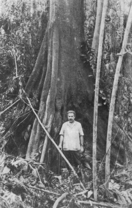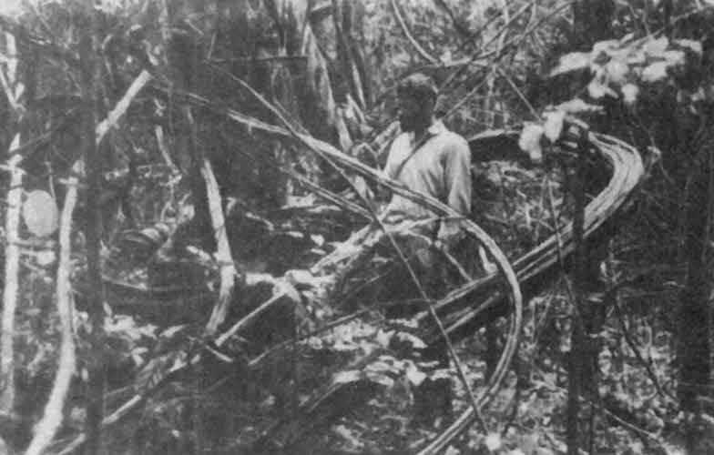Когда территория вокруг лагеря на ручье Бикелеле была обследована, мы стали уходить в джунгли с ночевками. В конце июня вышли на реку Мпуку. Впереди налегке идут три конголезца, прорубая тропу мачете. За ними — Потапов, Луи Бунгу и я. За мной — 12 рабочих с грузом. Дебри и дебри без конца и края. Стоят, не шелохнувшись, деревья-великаны, точно колонны, подпирающие небесный свод. Именно они придают тропическому лесу какую-то таинственность, величие. У них досковидные корни-подпорки, отходящие от ствола. Это своеобразные контрфорсы, придающие устойчивость гигантскому дереву. Встречается много деревьев с ходульными придаточными корнями, напоминающими лапы огромных пауков. Ходульные корни отходят от ствола дерева на высоте 2–3 м и тоже служат для поддержания дерева. Встретилось дерево, ствол которого сплошь покрыт конусовидными шипами. Это фагара. Стволы деревьев покрыты эпифитами — мхами и лишайниками. Они не связаны с почвой и получают питание из воздуха, атмосферных осадков, опавших листьев, птичьего помета. Деревья для эпифитов служат только опорой, их соками они не пользуются. Стволы деревьев перевиты всевозможными лианами. Идущие впереди рабочие вовсю орудуют мачете, разрубая лианы, но они не сдаются: то вопьются в куртку шипами, загнутыми внутрь, да так, что трудно оторваться, то жалят руки десятками мелких шипов при неосторожном прикосновении. Из рассеченных лиан течет то белый клейкий сок, то белый густой сок — каучук (каучуконосная лиана), то красный, напоминающий кровь. На одном из привалов Луи показал мне кусок лианы, завязанной узлом. «Зачем ты завязал лиану?» — спросил я его. «Она так растет. Пойдемте покажу». И он показал мне много лиан-завитушек: в форме колец, узлов, петель, качелей и других замысловатых фигур. Почему лианы не просто тянутся вверх, оплетая дерево, а образуют такие фигуры? Тесно деревьям в джунглях! И они вынуждены бороться за место под солнцем. Как и в животном мире, здесь идет борьба за существование, и побеждают более сильные, более приспособленные к условиям обитания деревья. Над нашими головами с шумом проносятся мартышки. Луи искусно подражает обезьяньему крику, чтобы заманить мартышку. Когда она появляется у него над головой, раздается выстрел, и мартышка, цепляясь за ветки, с шумом падает на землю. Длинный хвост мартышки Луи завязывает на шее, и получается нечто вроде дамской сумки, удобной для переноса. Первое время убийство мартышки производило на меня удручающее впечатление: уж больно много человеческого в ее облике. Буквально из-под ног идущего впереди рабочего выскочила антилопа и стрелой помчалась по джунглям. У меня как-то не укладывается в голове: как ей удается так свободно бегать, не цепляясь за лианы? А впрочем, что здесь удивительного? И в Казахстане наблюдал я подобные картины: джейраны с крохотными копытцами несутся с такой скоростью по зарослям саксаула, что газику за ними не поспеть и по хорошей дороге. По пути встретилось небольшое дерево с красными плодами величиной со смородину. Рабочие, побросав тюки, стали обрывать их. Оказалось, это очень горький дикий перец. Конголезцы охотно едят его с маниокой. Во второй половине дня, изрядно уставшие, остановились на ночлег. Рядом с нами много больших деревьев с крупными тяжелыми плодами. Рабочие расчистили для нас площадку не под ними, а н