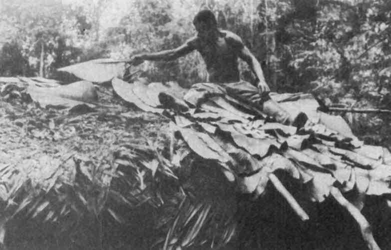 Пигмей Рафаэль Иссанга покрывает хижину пальмовыми листьями