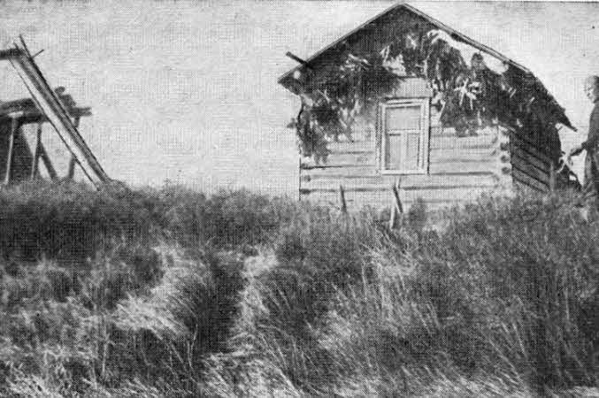 Рис. 23. Большеземельская тундра. Разрастание злаков возле промыслово-охотничьей избушки в результате удобрения бытовыми отходами Удобрения (РК) в пересчете на 1 га — не более 60 кг; урожайность зеленой массы — 25 ц/га (в 4–6 раз выше прироста фитомассы в окружающей тундре)