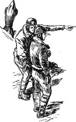 Сергей Петрович получил от Сашки полный дневной рацион: вареный картофель, непонятного состава хлеб и льняной жмых. Жмых был твердый, как огнеупорный кирпич. Крайнев клал его в воду и потом разбивал железным болтом. Остальное с трудом доделывали зубы. Принес Сашка также ученическую тетрадь в клетку, карандаш, заржавленное лезвие безопасной бритвы и фонарь, который удалось ему стащить с маневрового паровоза. Фонарь светил тускло, но с его помощью можно было передвигаться. Сначала Крайнев пытался нанести на план все ходы и подземные помещения пропорционально их действительным размерам (расстояние он вымеривал шагами). Но потом понял, что от него требуется не технический план важно было скорее изучить расположение ходов. Для чего это требовалось, он не знал, но догадывался, что дело касается размещения людей, возможно даже — штаба подпольной организации. Целыми днями, а иногда и ночью (под землей время было трудно определить) Сергей Петрович шагал по подземному хозяйству, порой пробирался ползком и заносил в тетрадь лабиринты. Кусок листового железа служил ему планшетом. Это занятие помогало ему коротать время, он чувствовал себя занятым, понимал, что нужен. И все же его терзало беспокойство: пройдет неделя-другая, план будет составлен, а дальше? Теплилась надежда, что организация найдет ему применение, даст другое задание, но какое — ясно представить не мог. Показаться на поверхности нельзя. Правда, обросший, исхудавший, он был почти неузнаваем. Но рисковать бессмысленно. А сидеть в подземелье — бездействовать, да ещё обременять товарищей заботой о себе, не хотелось. Крайнев злился на себя. Зачем вернулся? Надо было продолжить попытки перейти фронт. Но зрелые размышления подсказывали, что всё это неминуемо кончилось бы его гибелью. Листок за листком заполнялась тетрадь эскизами, и постепенно расположение ходов укладывалось в голове Крайнева так же ясно и четко, как на бумаге. Старая и новая водоспускные системы представляли собой совершенно изолированные участки. Крайнев обнаружил несколько подземных залов, служивших водоотстойниками и водосборниками. Своей штаб-квартирой он избрал подземную насосную для откачки дренажных вод из-под насадок мартеновских печей. Насосная сообщалась длинным колодцем с поверхностью земли, и отсюда было удобнее всего проникать под насадки третьей мартеновской печи — место встреч с Сашкой. Много труда стоило Крайневу найти вход в подземную лабораторию, о которой он рассказывал Вале. Два с половиной десятка лет эта лаборатория бездействовала и никому не была нужна. В конце концов ему удалось обнаружить в канале для стока воды от рельсобалочного стана замурованное отверстие. Ещё труднее было разбирать кирпичи, сложенные на крепчайшем цементном растворе. Вот за этой работой он понял, насколько ослабел за последнее время. От нескольких ударов ломом появлялась дрожь в ногах, лоб покрывался капельками холодного пота. Наконец кирпич по кусочкам был разобран, Крайнев пролез в проделанное отверстие, прошел по довольно длинному ходу и попал в огромный зал. Здесь до сих пор стоял копер для испытания рельсов на удар, валялись изогнутые куски рельсов. Сергей Петрович долго бродил по подземному залу. В одном углу лежал пожелтевший от времени обрывок газеты «Русское слово», в другом коробка от папирос 