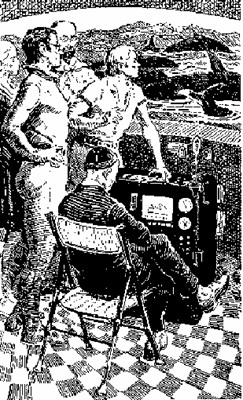 «Конура» оказалась огромной лабораторией, одну стену в ней занимал аквариум. За литым стеклом высотой около пяти и длиной не менее восьми метров застыла бирюзовая вода. В ее необычайной прозрачности кишела жизнь материковой отмели. Парили стайки рыб, одетые в разнообразные «праздничные» наряды, ветвились кусты кораллов, багряные, белые, розовые, зеленые, ярко-желтые, предательски прекрасные анемоны «цвели» на каменных глыбах, поднимались изящные ленты темно-зеленых, бурых и красных водорослей. На дне сновали крабы, рачки, лежали, раскрыв створки, перловины. Второй достопримечательностью лаборатории был светильник. Большая прозрачная чаша на бронзовой треноге. В чаше с водой застыл невзрачный кальмар-альбинос. Как видно, один из глубоководных видов. «Зачем он здесь?» — подумал я, заглядывая в чашу. Кальмар «ответил». Он вспыхнул изнутри голубым светом, а вся его поверхность покрылась разноцветными, тоже светящимися точками, расположенными с большим вкусом. При свете, источаемом кальмаром, можно было читать. Я никогда не видел таких кальмаров и подумал: «Вот бы послать Биате на спутник!» Как только я отошел от чаши, кальмар погас. Чаури Сингх, казалось, не обращал на меня никакого внимания. «Не уйти ли?» — подумал я и сразу отказался от этой мысли. Все в этой комнате притягивало: множество незнакомых приборов, кокетливый кальмар, грандиозный аквариум, на который можно было смотреть не отрываясь часами, но особенно интриговал сам хозяин. Высокий, худой, он сосредоточенно следил сразу за осциллографом и телеэкраном. На экране фиксировался кусочек океана, вернее, его дна, загроможденный черно-бурыми обломками базальта. Судя по темно-зеленому цвету воды, глубина была довольно значительной. Неожиданно я увидел осьминога. Он был необычайно велик. Я различал его смутные очертания и огромные фиолетово-черные глаза. Перед ним лежала груда двустворчатых моллюсков. Осциллограф чертил ровную, слегка волнистую линию. Я догадался, что каким-то непостижимым для меня образом Чаури Сингх умудряется наблюдать и записывать биотоки мозга этого моллюска. Чаури Сингх повернулся ко мне и спросил: — Тебе никогда не приходилось смотреть чужими глазами? Нет, конечно, не глазами другого человека, разница при этом была бы незначительна, а, например, глазами собаки, жука, курицы, рыбы, слона. Так вот, представь, что ты превратился в головоногого моллюска! — Он нажал желтый клавиш, и картина на экране телевизора мгновенно изменилась. Вода теперь казалась чем-то другим, абсолютно прозрачным, нежно-фиолетовым веществом. В нем плавали причудливо расплывшиеся громады скал, какие-то странные растения очень сложной пастельной расцветки. В фиолетовом мире двигались фантастические рыбы; и по форме, и по окраске они превосходили все, что мне приходилось видеть необыкновенного в глубине тропических морей. Картина неожиданно стала меняться. Цвета стали ярче, очертания скал, растительности, животных приобрели более знакомые формы. Коралловый куст вспыхнул алым пламенем, затем постепенно стал менять цвета, как остывающая сталь. Анемона, примостившаяся на коралловом кусте, так же поспешно меняла окраску своих «лепестков» и ножки, словно мгновенно переодевалась. Удивительные превращения происходили с чудовищно несуразной рыбой, будто раскрашенной художником-абст