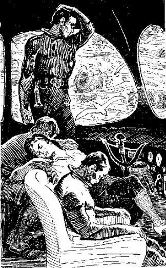 Ки рванул ручку двери. Хорошо, что она не открывалась в полете. Я усадил Ки в кресло рядом с Биатой, и он безропотно уснул. Костя также с трудом боролся с одолевающей его тяжелой дремотой. Когда все кончилось, он рассказал, что ему хотелось куда-то идти, действовать, но он усилием воли поборол эту бессмысленную жажду деятельности и, обессилев, уснул. Вначале мне не хотелось спать, и я не был в угнетенном состоянии, не испытывал я также стремления оставить летательную машину, наоборот — я чувствовал себя как после ионного душа и с сожалением посматривал на ослабевших друзей. Только когда Ки попытался открыть двери, я поймал себя на том, что испытываю острое разочарование от того, что дверь не открывалась. Наверное, похожее состояние было и у Пети, потому что он сказал, поморщившись: — Надо сменить замок. Мы кружились в стае птиц над Великим Кальмаром и со злорадным удовольствием наблюдали, как чайки, а потом и альбатросы стали падать в воду и комками перьев лежали вокруг Кальмара. Некоторые падали на него, и он небрежным жестом отшвыривал их метров на сто одной из своих «рук». Петя Самойлов сказал: — Все идет так, как я и предполагал. Только почему-то мы долго не становимся птицами. Надо сменить замок, и тогда… «Действительно, если бы у нас был другой замок, то мы открыли бы двери и полетели по кругу», — подумал я, и мною овладела тягостная апатия. Петя сидел, а я стоял в неудобной позе, и оба мы с туманным безразличием смотрели на экран видеофона, где по очереди появлялись Нильсен, учитель, Чаури Сингх, Лагранж, Коррингтон. Они что-то говорили, и голоса их были явственно слышны в тишине, нарушаемой лишь шелестом крыльев да монотонным жужжанием двигателя, и все-таки мы не могли понять, что они говорят, о чем умоляет Коррингтон, что советует учитель. Их слова заглушал шелест крыльев. И он, этот шелест, казался нам самым важным, самым необходимым. Мы слушали его всем своим существом и смотрели вниз, изнывая в томительной тоске. Никому из нас не пришло в голову подняться выше над морем, в крайнем случае улететь, избавиться от наваждения. Тоска отхлынула так же внезапно, как и охватила нас. Великий Кальмар зашевелился, его туловище стало опускаться вглубь, а голова с пучком щупалец поднялась над водой. Он будто привстал и, чуть наклонись, озирался вокруг… Щупальца его взметнулись вверх и раздались в стороны, приняв форму отвратительного цветка. — Какая прекрасная лилия! — сказал Костя. Его я слышал и понимал, а что говорили и стремились жестами показать люди на экране, я по-прежнему не мог воспринять. Костя болезненно поморщился: — Какой запах! Ты чувствуешь, как пахнет цветок? — Он пахнет рыбой, твой кальмар. Это «Звездная пыль», так пахнет Биата. Моя Биата! В ответ Костя засмеялся, и я нисколько не удивился, что Петя поменялся с ним местами. Он спал рядом с Биатой, и она положила ему голову на плечо, а Костя стоял рядом со мной и смеялся. — Как ты заблуждаешься! — сказал Костя. — Биата любит меня. Только меня, и больше никого. — А Вера? — спросил я. — Вера тоже любит только меня. — А ты? — Я люблю и Биату, и Веру. Я всех люблю, и меня любят все. И любили бы еще больше, если бы не ты. Ты мешаешь нашему счастью. Знаешь что? — спросил он, обрадовавшись чему-то и глядя вниз. — Нет, я люблю Биату! — Молчи! Видишь внизу остров? В середине его цветок, а вокруг деревья, кокосов